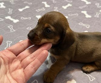 Working with Donia and Army of Dachshunds was a great experience all around. From the very first contact, she was incredibly knowledgeable, professional, and genuinely passionate about her dogs. My puppy is beautiful and healthy and has a wonderful temperament. She is very social and eager to learn. I would definitely recommend Army of Dachshunds, Donia does a great job with getting her pups ready be with their new families.