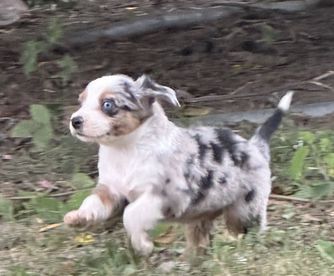 Our puppies include red merle and red. Colors will vary depending on the parent dogs.