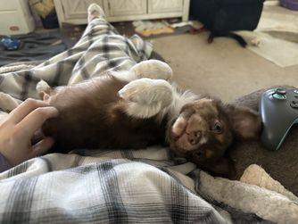 I was introduced to breeding by my sister with chihuahuas. I originally wanted to breed Goldens but our female didn’t pass the qualifications needed so we got her fixed and she’s a lovable couch potato lol. We then got our Aussiedor and decided to breed her and it was very rewarding. Now we are going to breed our mini Aussie. Love the breed❤️