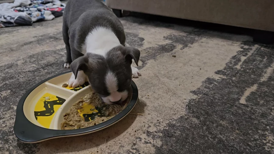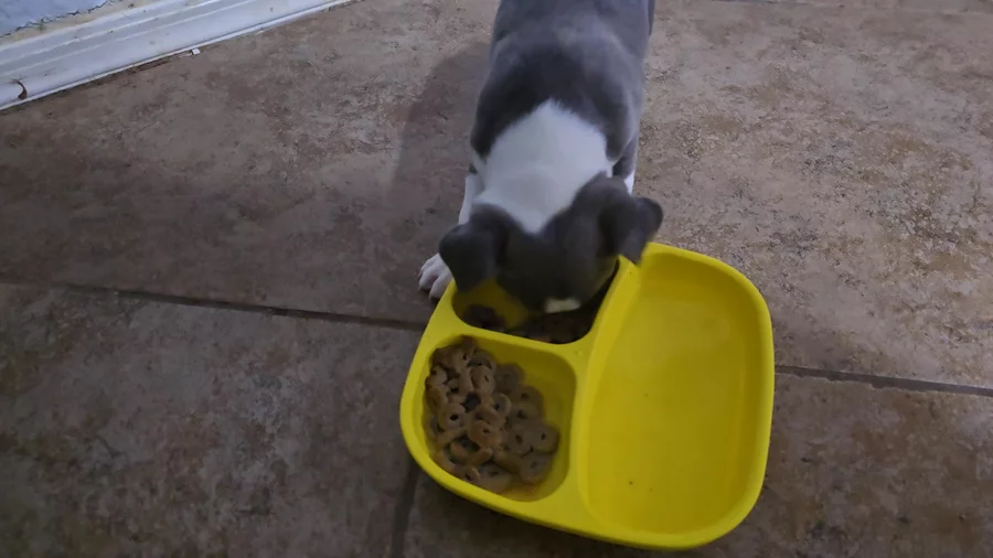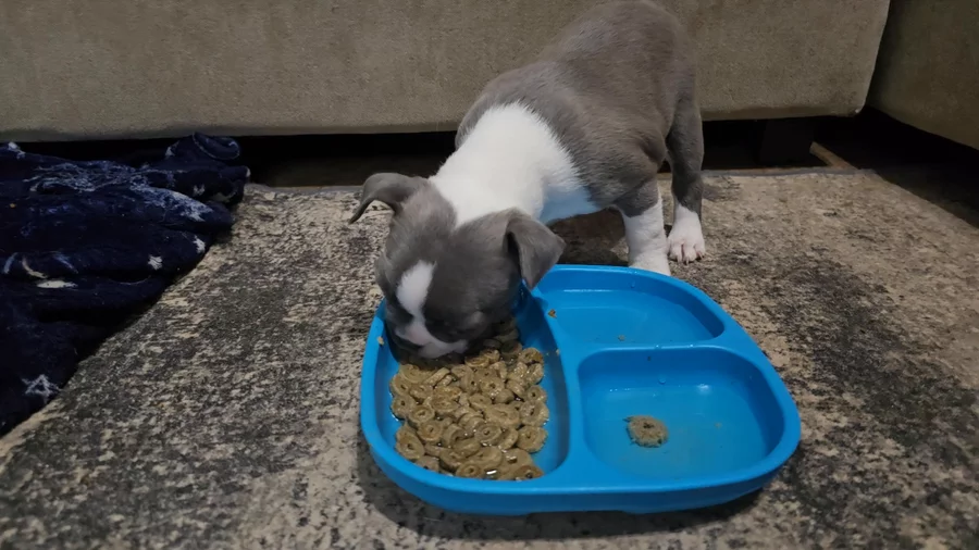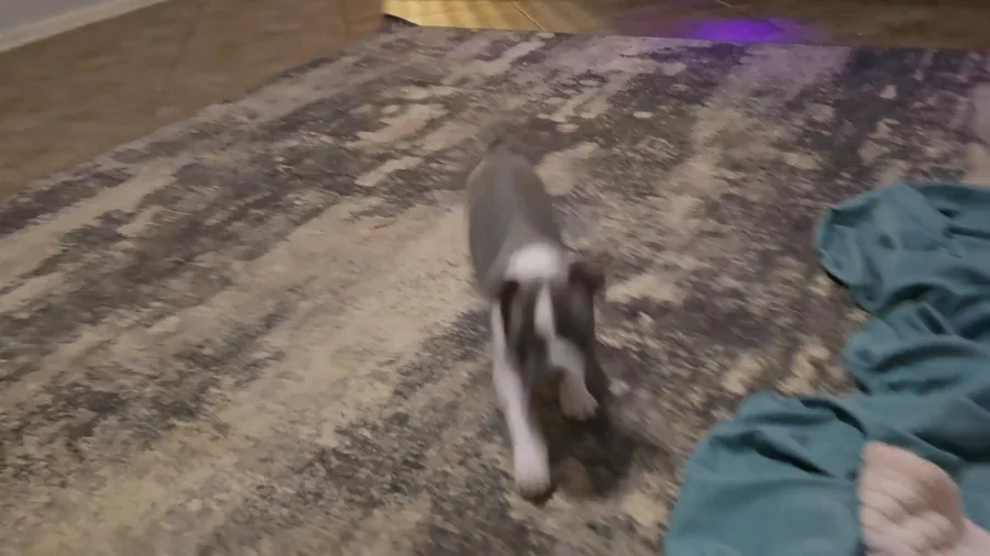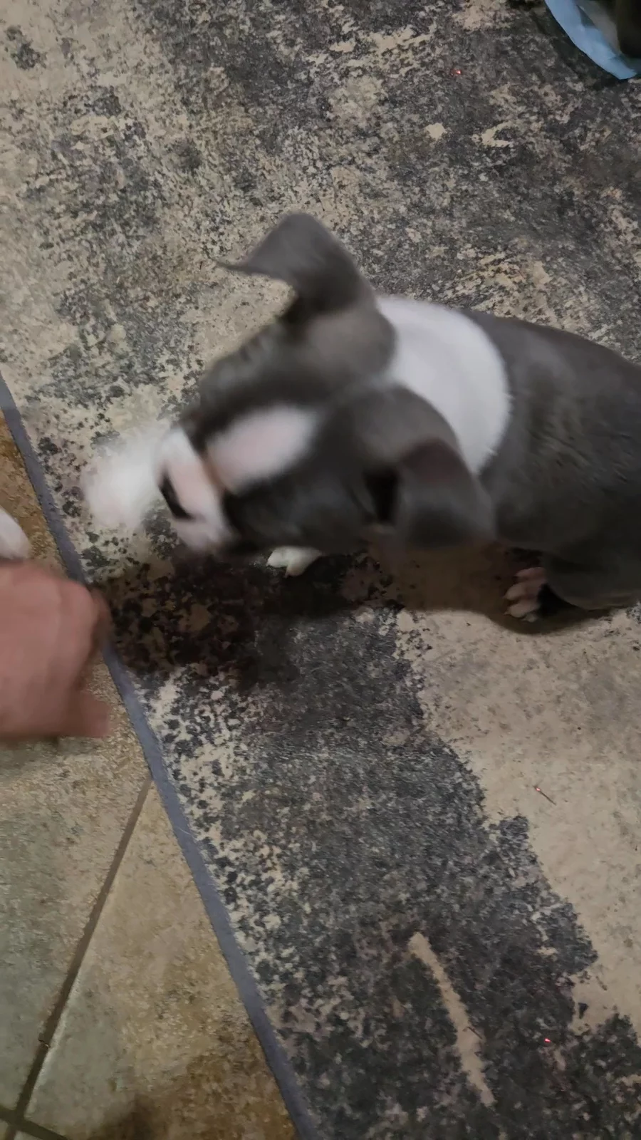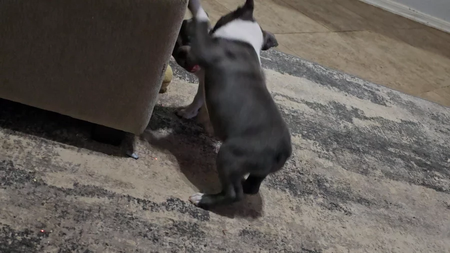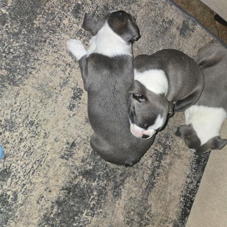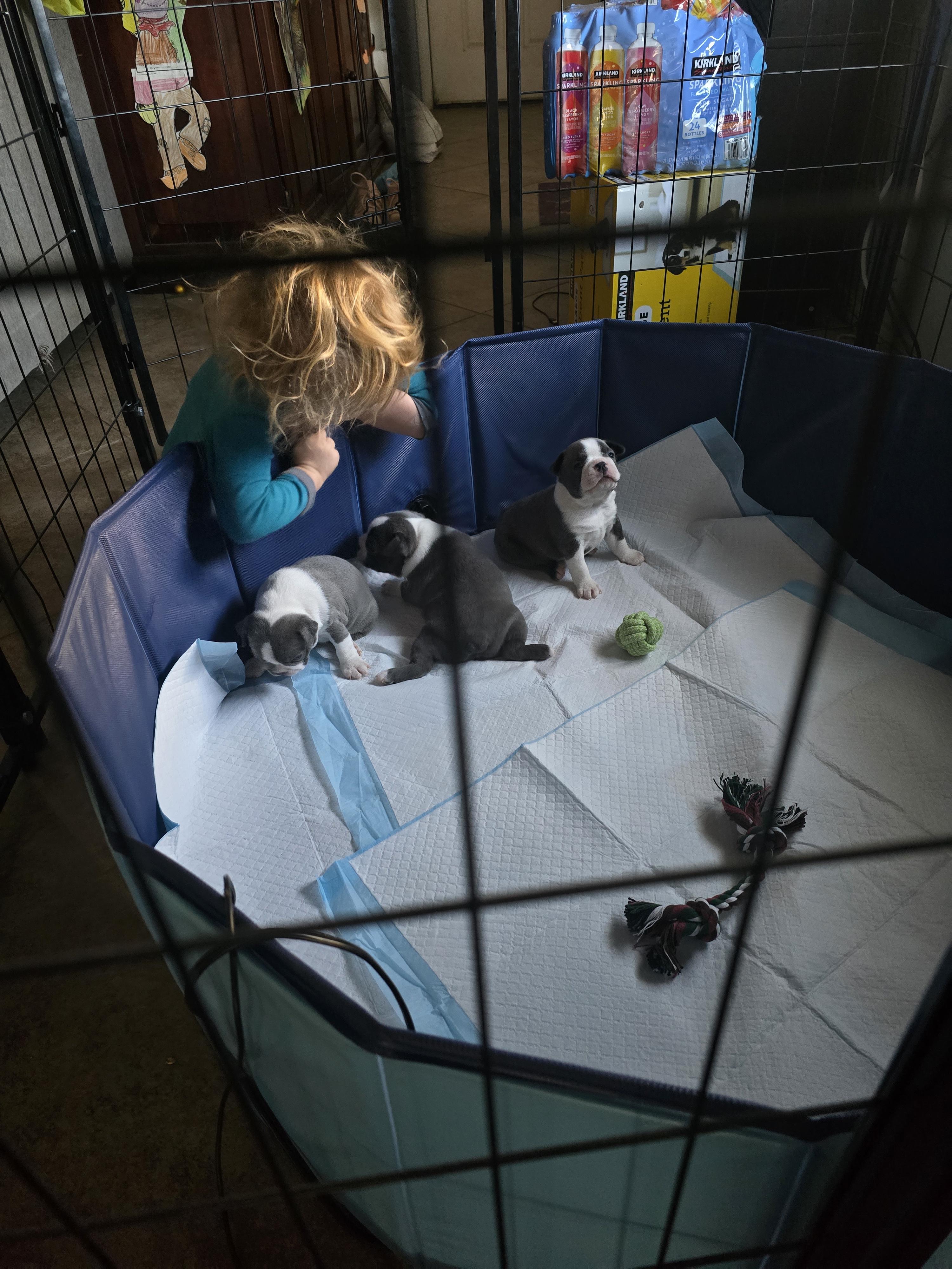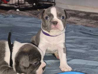 Our puppies include black brindle and white and seal brindle and white. Colors will vary depending on the parent dogs.