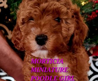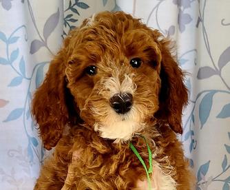 Dumplin is a sweet 16 pounds dark red Miniature Poodle from intense dark red Miniature Poodle parents...he is genetically health tested clear and I'm awaiting his color intensity...