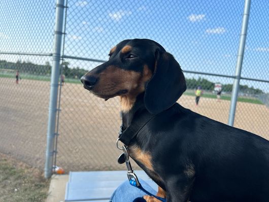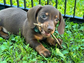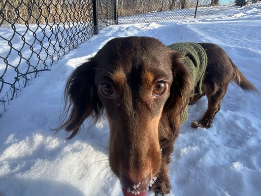 Wilson is a male Dachshund. Carefully selected as a great representative of his breed, Rachel decided to make him part of their program. Rachel has passed Good Dog’s screening process, which involved a review of their breeding practices, environment, and the mental and physical health of their dogs.