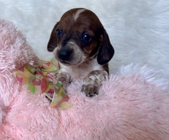 Hershey is a female Dachshund. Carefully selected as a great representative of her breed, Rachel decided to make her part of their program. Rachel has passed Good Dog’s screening process, which involved a review of their breeding practices, environment, and the mental and physical health of their dogs.