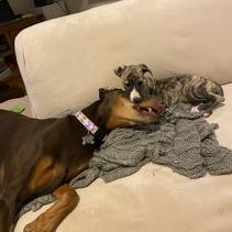 Lisande obviously loves and cares for her whippets and their puppies. She cares that prospective owners are committed to pet adoption and competent to care for her new puppies. The puppy that we adopted was one of nine in the litter. Lisande trained the mother and her pups to go out/in a single flap pet door for potty in the back yard. When I took my puppy home at 10 weeks, he was essentially potty trained. One photo shows our double flap pet door to our back yard. Our new puppy had it figured out after 15 minutes with some treats and encouragement. It has been only two weeks since we bought the puppy home and he now uses the pet door on his own and has not had an “accident” in our house.