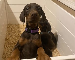 Our puppies include black and rust and red and rust. Colors will vary depending on the parent dogs.