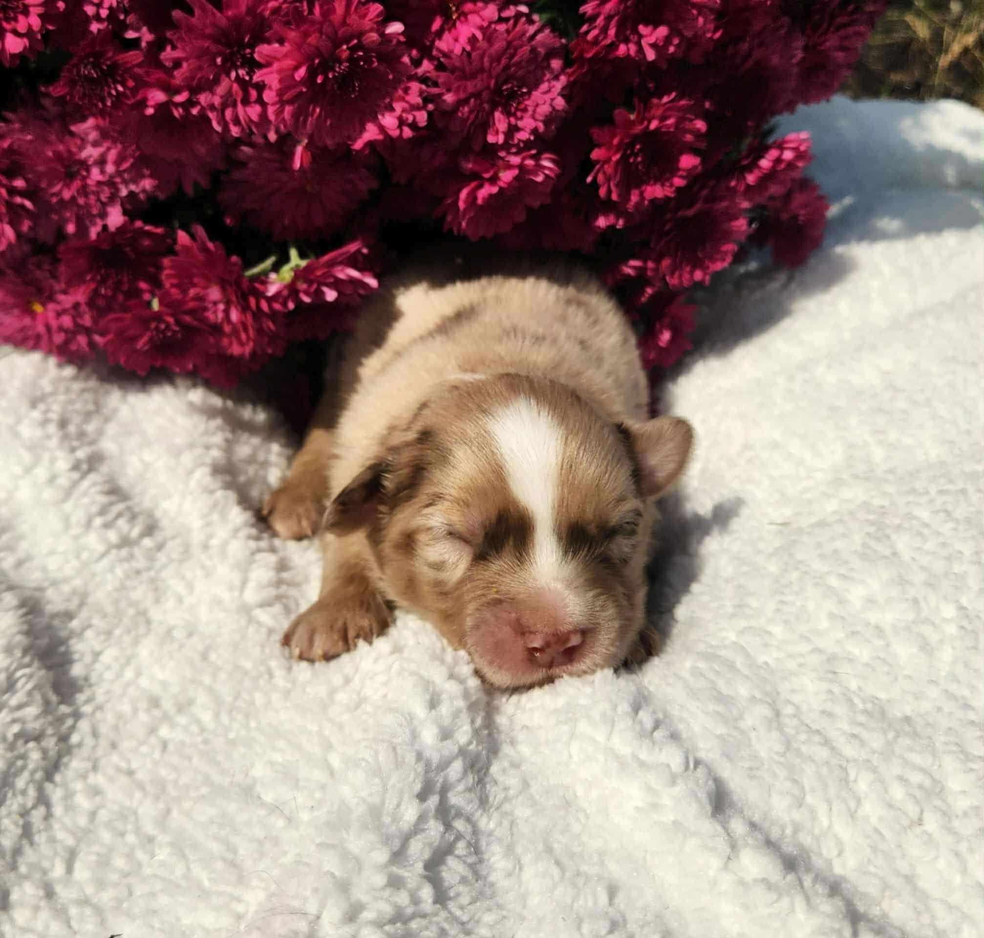 Our Miniature Australian Shepherd puppies include red & white, yellow, blue merle, black tri, red tri, red merle, red, and black. Toy Australian Shepherd puppies include black & white, red & white, red, black, black tri, blue merle, red merle, and red tri. Colors will vary depending on the parent dogs.