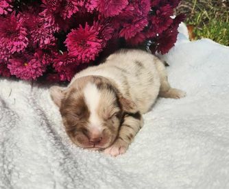 I'm Rhea V., the breeder behind Ashby Lou Aussies located in Sandown, NH. Our dogs are bred for health, temperament, and intelligence. We strive to produce the best overall pets and family members. We are committed to staying connected to our puppy families throughout their lifetimes to ensure they never feel alone and can raise their new, furry companion with confidence and joy.
