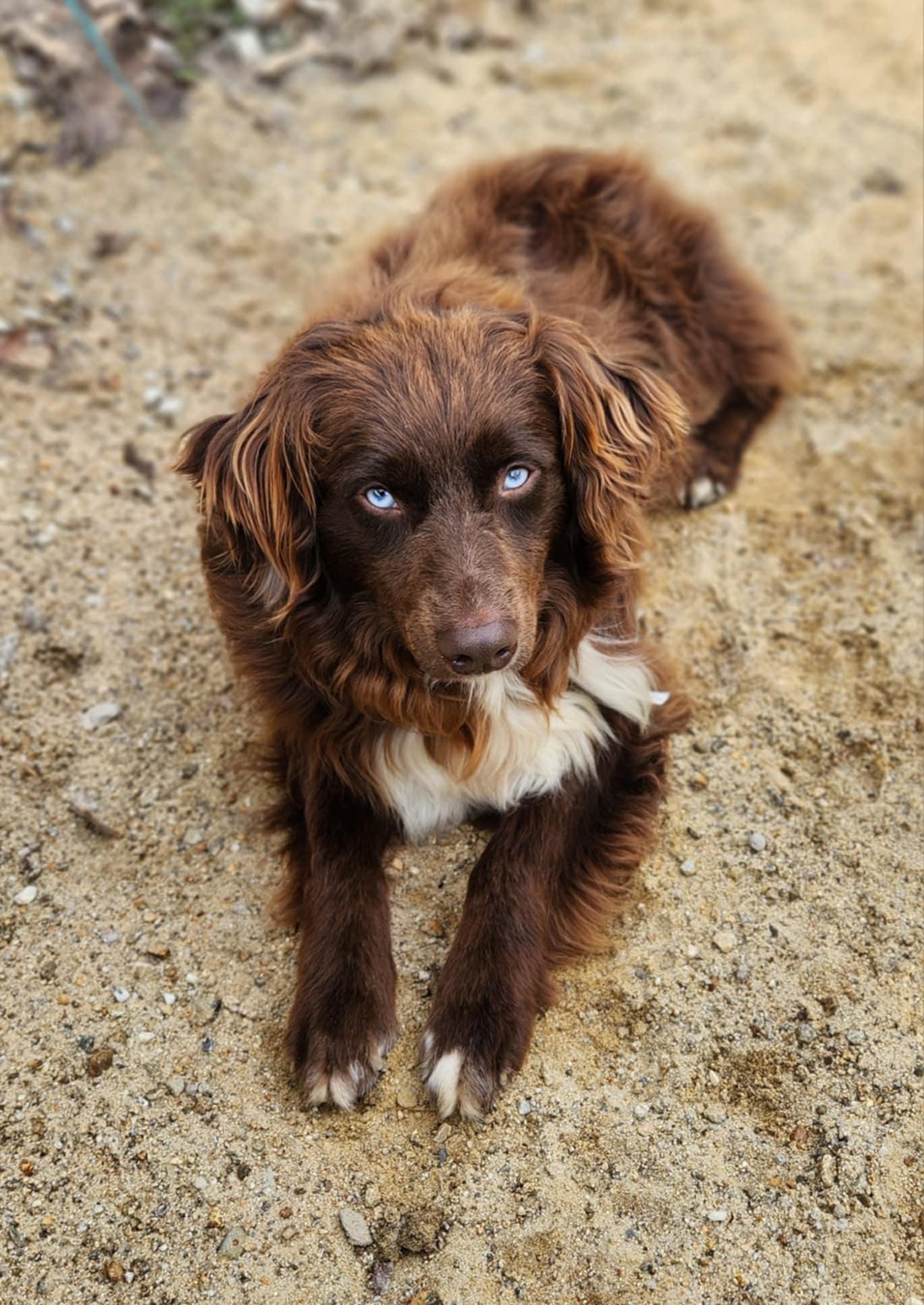 Junie is a female Miniature Australian Shepherd. Carefully selected as a great representative of her breed, Rhea decided to make her part of their program. Rhea has passed Good Dog’s screening process, which involved a review of their breeding practices, environment, and the mental and physical health of their dogs.