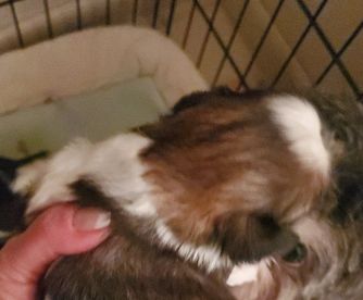 I am retired and home most of the time. Both of my grandchildren are around the puppies, so they are all well-socialized and very good with children. The puppies are born in my bedroom and receive around the clock care and attention.