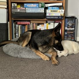 I highly recommend Tracy/ASJ White Shepherds. Tracy was responsive to my inquiries and answered all of my questions. Ben is doing quite well and learning to deal with his new friend Gordy.