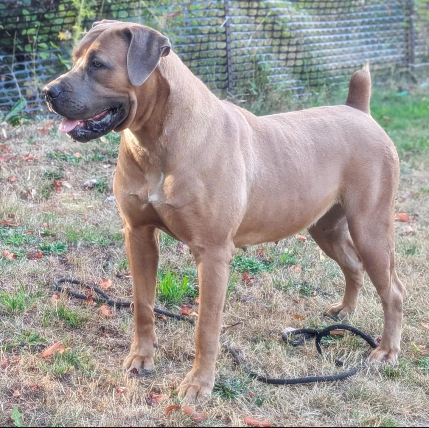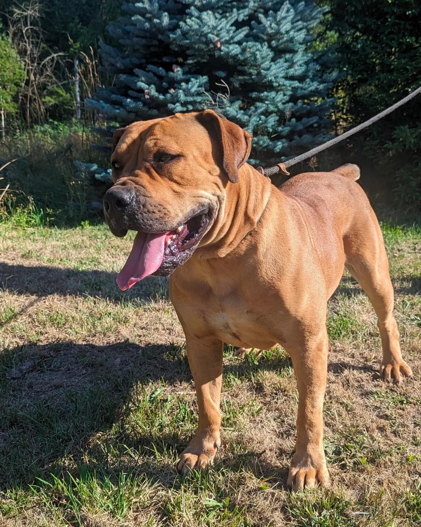 GQ is a male Boerboel. Carefully selected as a great representative of his breed, Mary decided to make him part of their program. Mary has passed Good Dog’s screening process, which involved a review of their breeding practices, environment, and the mental and physical health of their dogs.