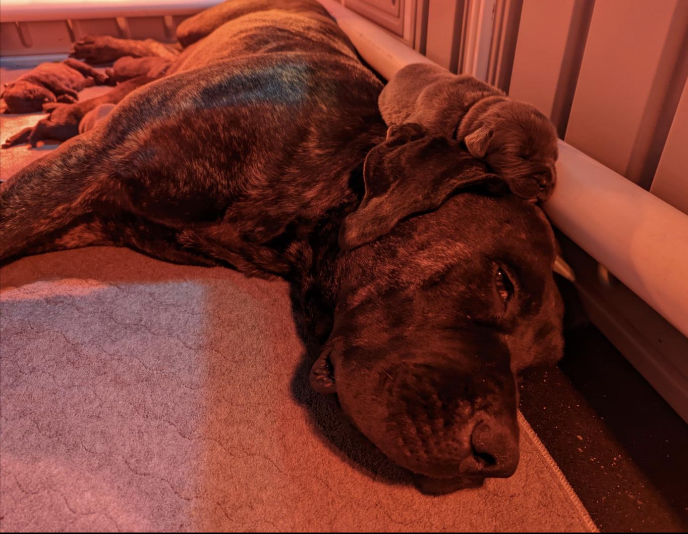 Freya is a female Boerboel. Carefully selected as a great representative of her breed, Mary decided to make her part of their program. Mary has passed Good Dog’s screening process, which involved a review of their breeding practices, environment, and the mental and physical health of their dogs.