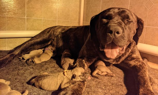 Askuwheto Boerboels was very communicative through the whole process, and is breeding some beautiful pups! Our new puppy came to us very well socialized, and at 11 weeks, she was already trained in several basic commands, and was basically potty trained. She is a keen observer of the world around her, and is totally fearless. She's not spooked by other animals, people or loud noises. It's clear to me how much work Askuwheto Boerboels has down with our puppy, and I'm so grateful! I'd recommend Askuwheto Boerboels to anyone looking for one of these beautiful dogs, and we'll definitely be back when we're ready for another!