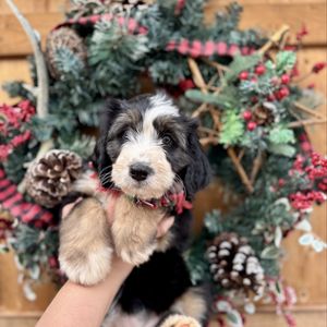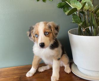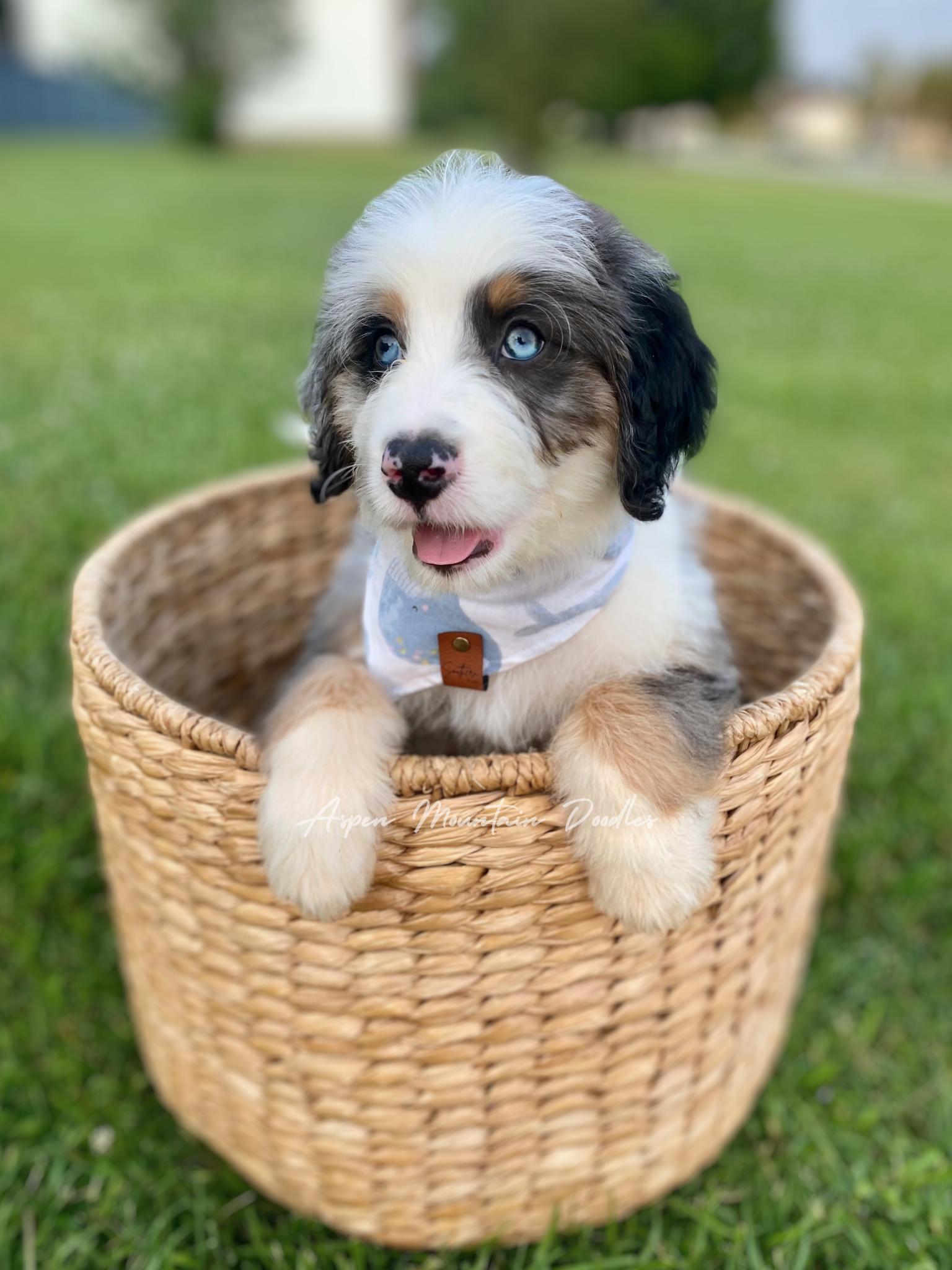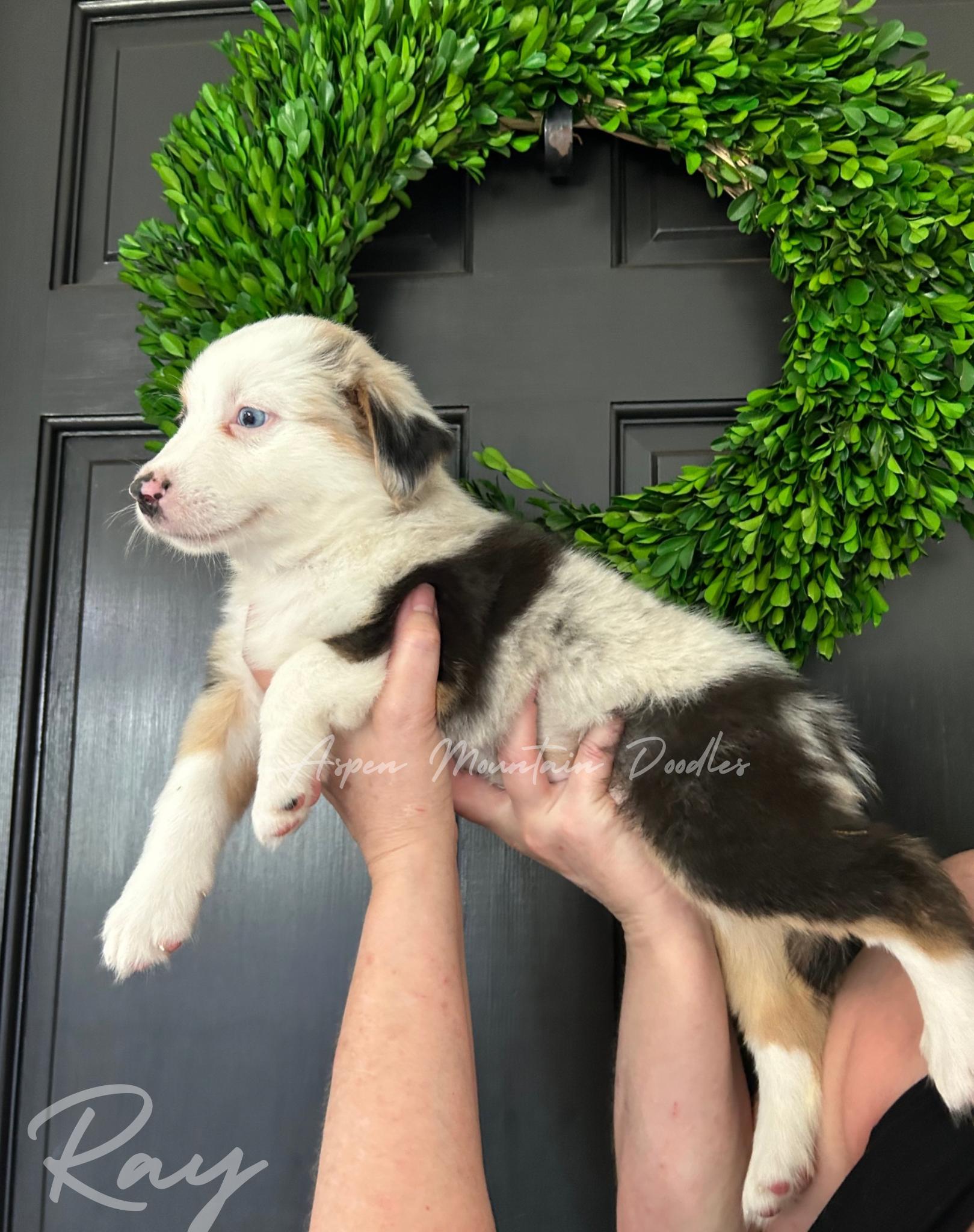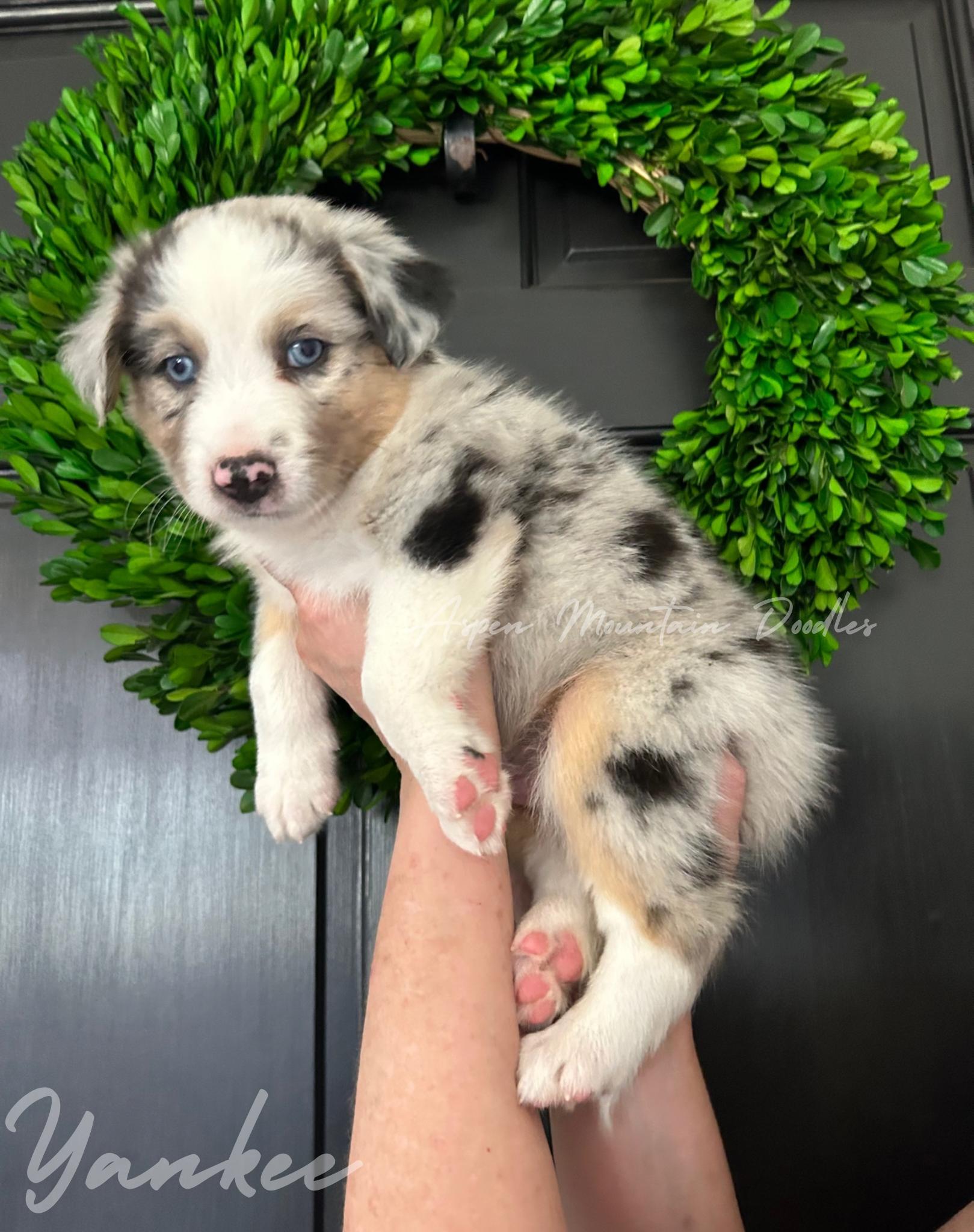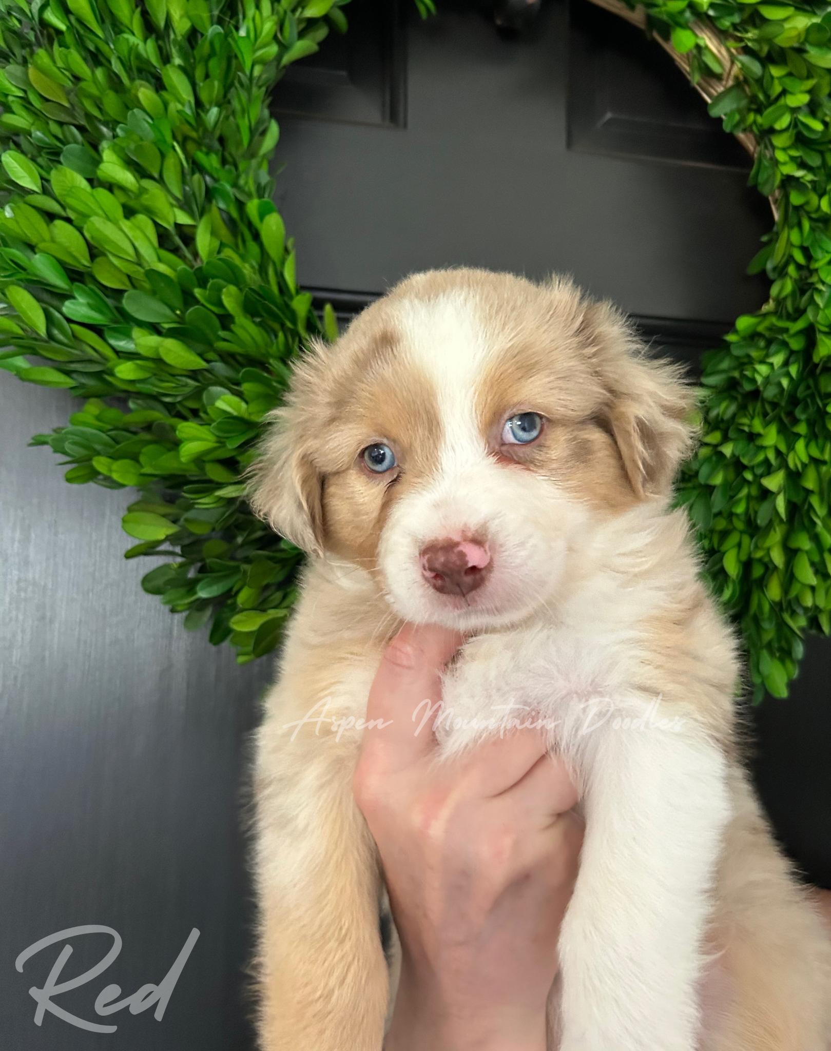 Assorted Doodle Crosses puppies include black tri-color and blue merle. Aussiedoodle puppies include blue merle, red merle, black phantom, black and white, and red phantom. Miniature Australian Shepherd puppies include blue merle, black tri, red tri, and red merle. Colors will vary depending on the parent dogs.