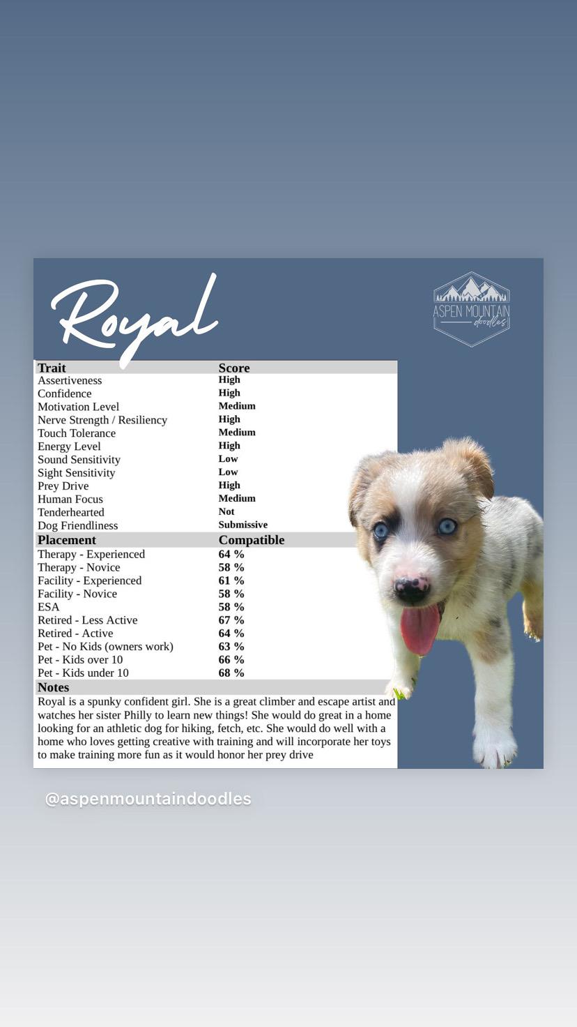 We couldn't be happier with our experience getting our Aussiedoodle from AMD! From the very beginning, the communication was incredible. She was always quick to respond, answered every question with care and expertise, and made sure we felt confident and supported every step of the way — even after we brought our puppy home. Our puppy came to us incredibly well-socialized and clearly raised with love and intention. She had already been exposed to a wide range of everyday sounds, which made the transition to our home SO much smoother. She rides beautifully in the car, has an amazing “off switch” for calm time inside the house, and is just an all-around joy to be around. You can tell these puppies are not just bred — they are raised with purpose. The breeder truly goes above and beyond to prepare them for their future families. Whether it’s exposure to kids, social outings, or everyday life scenarios, our pup came to us confident, curious, and ready to take on the world. What impressed us most was how obvious the breeder’s passion is. She pours her heart into every litter and it absolutely shows. These dogs aren’t just pets — they’re family, and she makes sure each one is set up for a lifetime of success and happiness. We feel incredibly lucky to have found her and couldn’t recommend her more highly to anyone looking for a smart, balanced, and well-raised puppy!