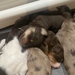 Our puppies include brown and white, blue merle, red merle, black and white, black tri-color, and red phantom. Colors will vary depending on the parent dogs.