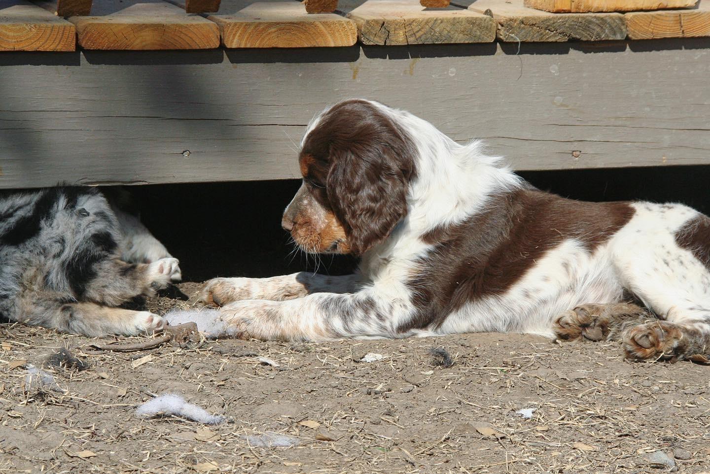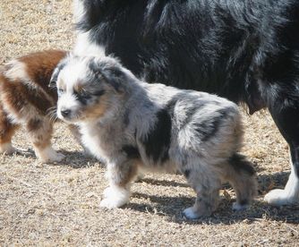 Our English Springer Spaniel puppies include black white and tan, black and white, liver and white, and liver white and tan. Black and Tan Coonhound puppies are black and tan. Poodle puppies include black and parti. Australian Shepherd puppies include black, red merle, blue merle, and red. Colors will vary depending on the parent dogs.