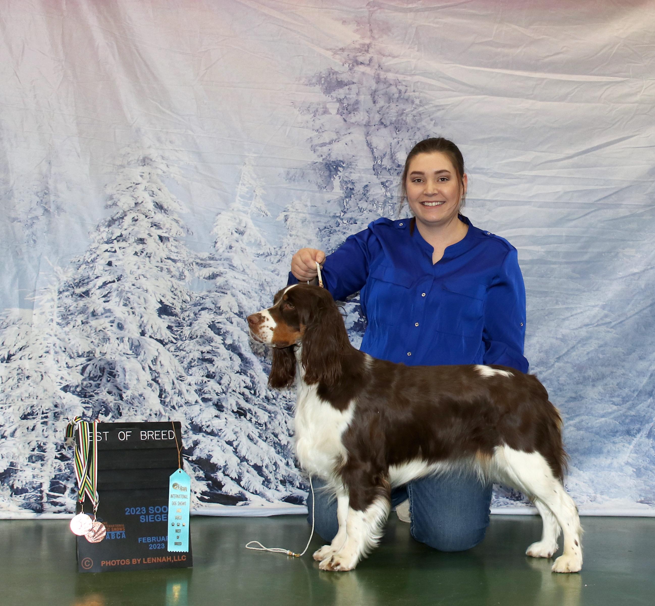 Leia is the sweetest dog I know! So loving and loyal! She is an International Champion and is a great representation of the English Springer Spaniel breed!
