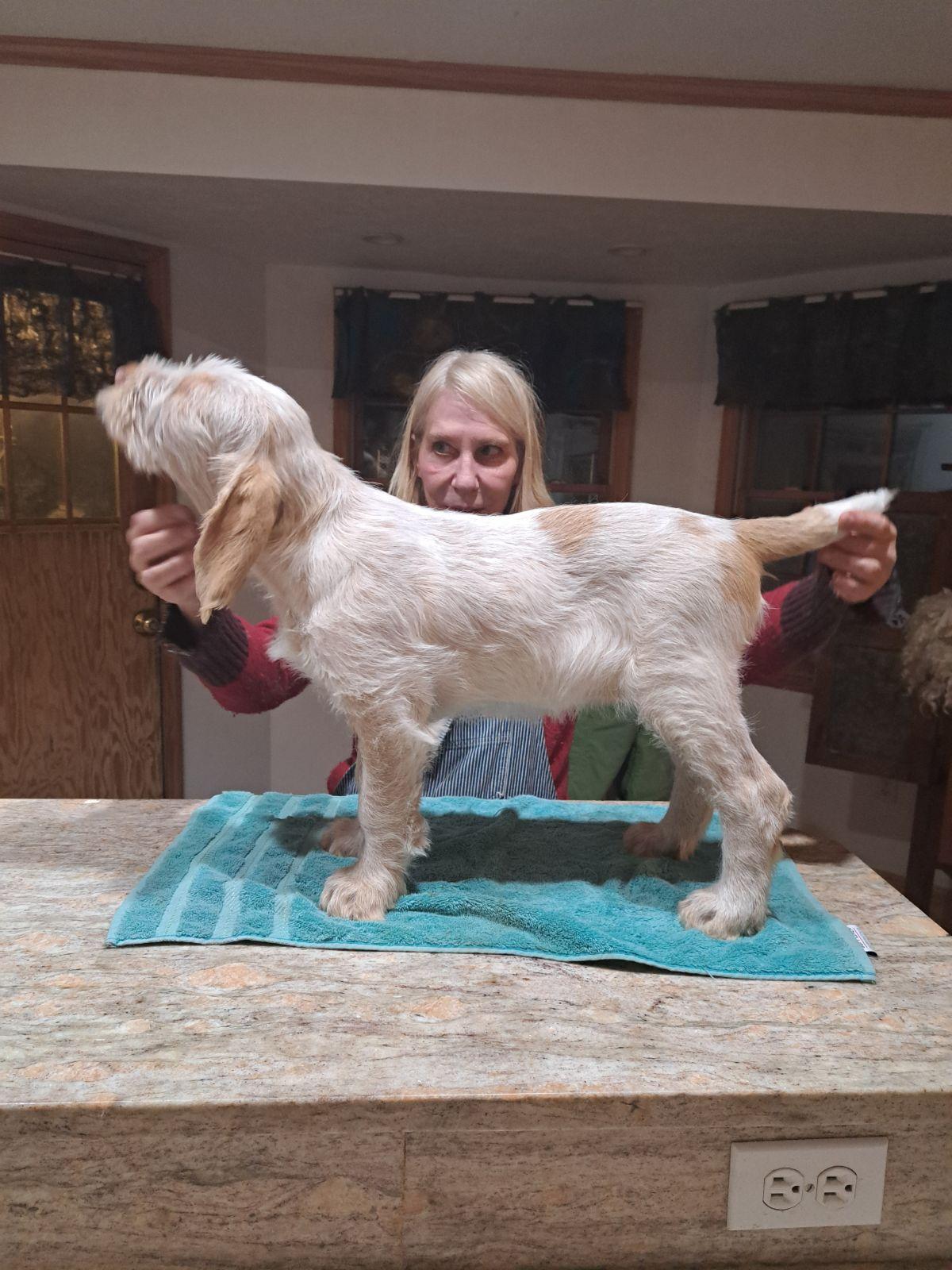 We picked up our darling on Monday, July 7th. Stefanie graciously kept her a little longer for us so we could go out of town. The dog is beautiful and already well trained. Before we picked her up Stefanie sent pictures and updates. We are sold on the Spinone breed such a calm yet fun dog.