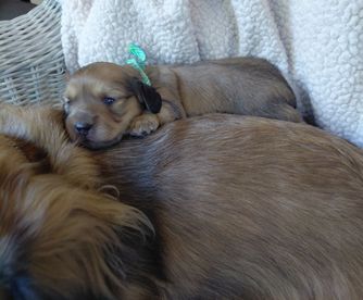 Our Dachshund puppies have longhaired coats. Coat types may vary depending on the parent dogs.