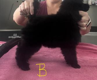 Bessie is amazing! She is black, in size, square, with a lovely coat, balanced, and a lovely oval eye and beautiful expression. Bessie loves the show ring and always has a commanding presence about her.