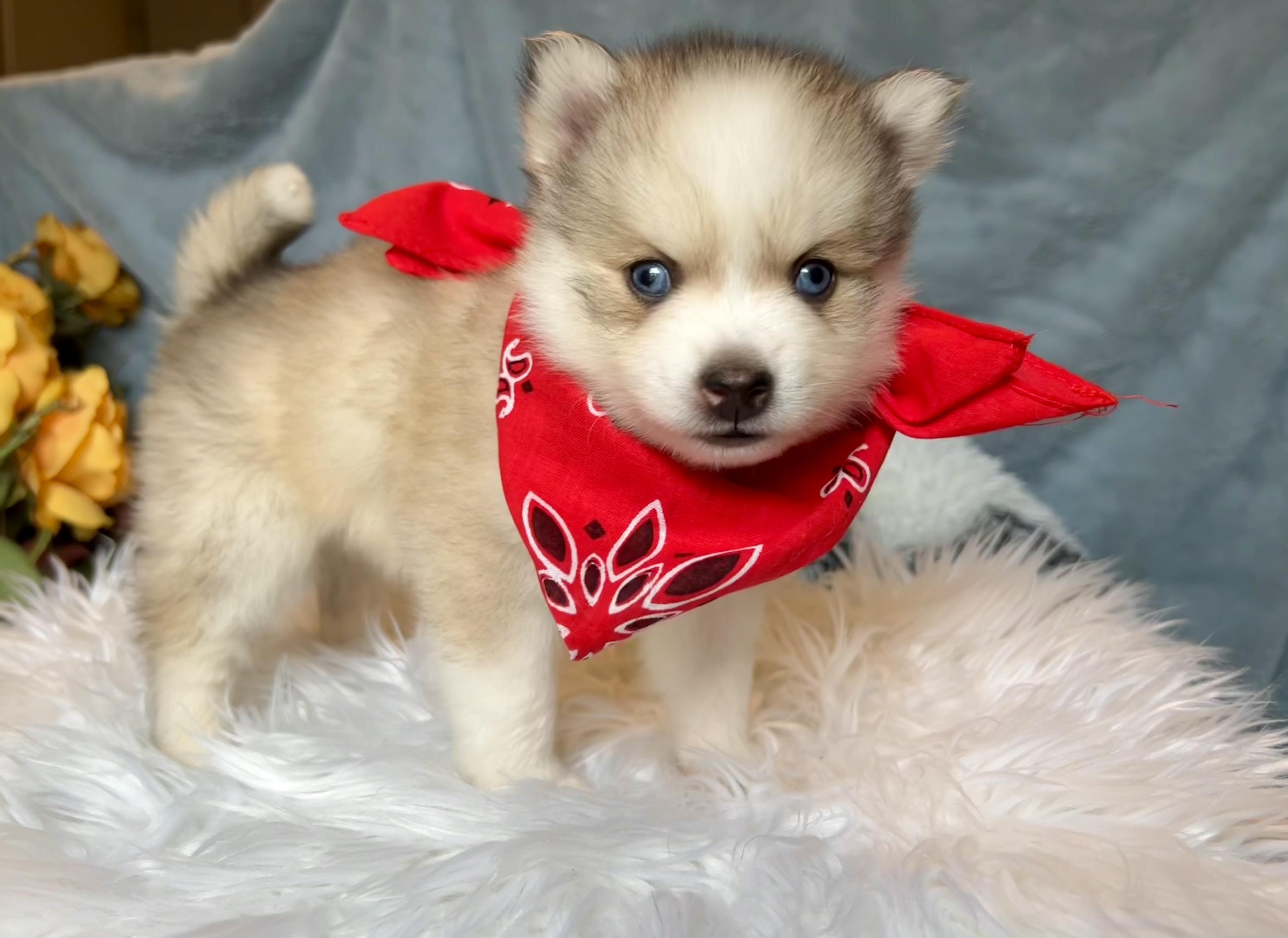 Tesla is a male Pomsky. Carefully selected as a great representative of his breed, Robin decided to make him part of their program. Robin has passed Good Dog’s screening process, which involved a review of their breeding practices, environment, and the mental and physical health of their dogs.