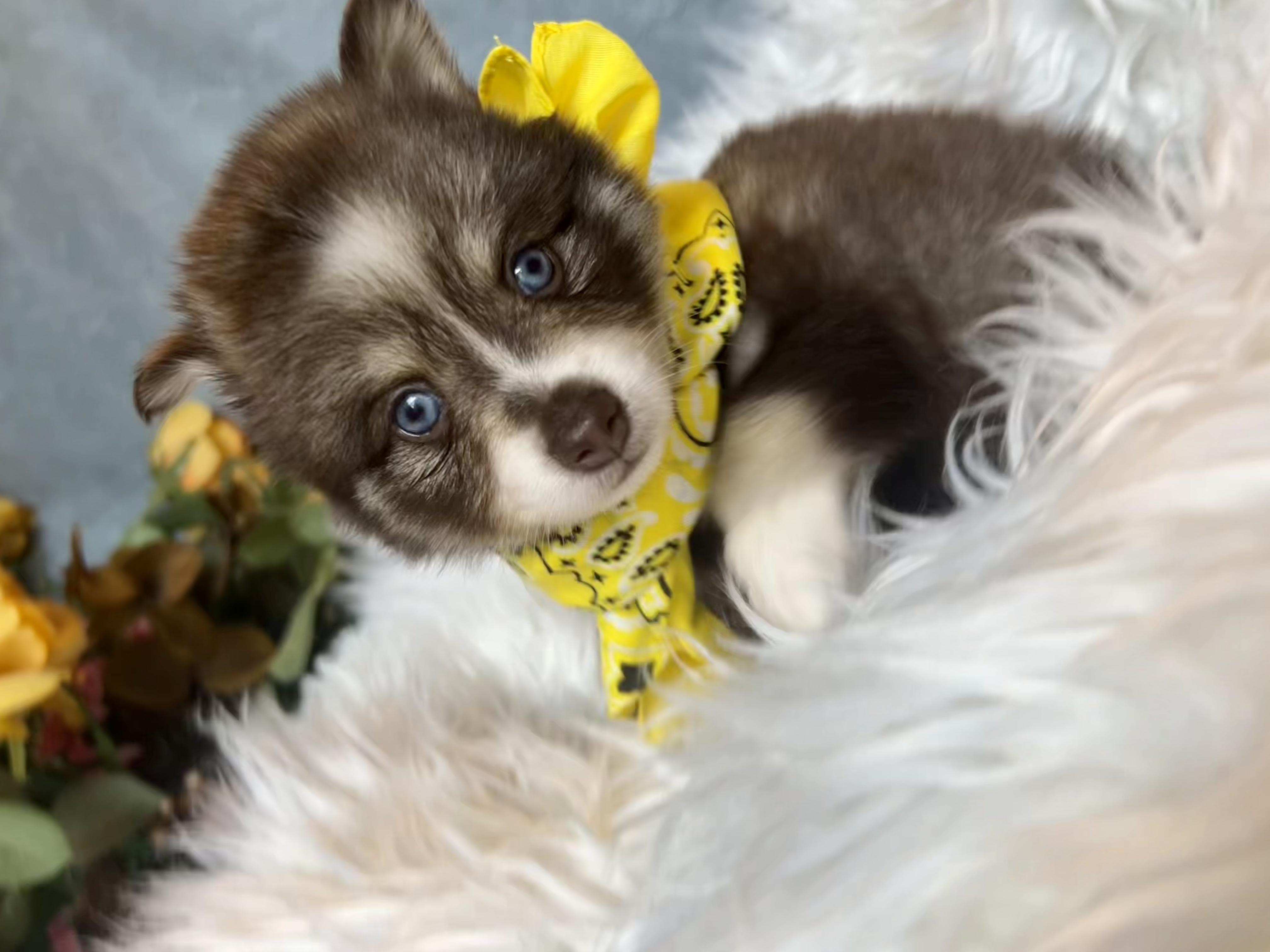 Bri is a female Pomsky. Carefully selected as a great representative of her breed, Robin decided to make her part of their program. Robin has passed Good Dog’s screening process, which involved a review of their breeding practices, environment, and the mental and physical health of their dogs.