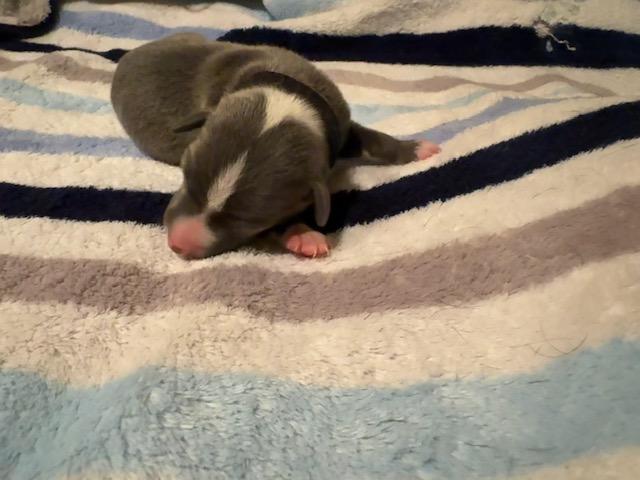 Our puppies include white and fawn, white and blue fawn, and white and blue. Colors will vary depending on the parent dogs.