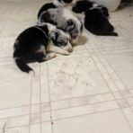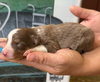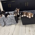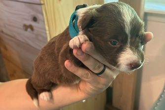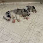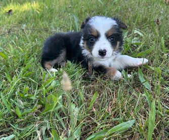 Our puppies include tri-color, black and white, blue merle, red merle, and red. Colors will vary depending on the parent dogs.