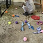 Cait is doing fine. We have a fairly large backyard. In the morning I walk the perimeter of the yard several times. Cait does twice as many laps, usually at full speed. House training is going fine. We will keep her confined to the kitchen for a couple more months to make sure the habit is engrained. A couple pictures are attached. Cait likes to play on the lawn sprinkle.