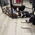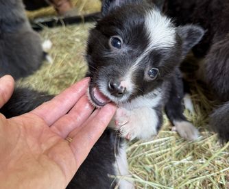 We sold our house in 2022 and went on a 2 year journey to meet with different working line border collie breeders across the US and Canada. We spend our time reading, researching, and observing to learn as much as possible before our second daughter was born. We selectively chose the right puppies to bring into our program. We are constantly keeping an open mind and learning with each litter. We strive to breed well rounded, healthy, genetically sounds, temperamentally balanced, and socialized puppies. We are constantly striving to do better and improve our program. We socialize our puppies from the time they open their eyes to our children, ducks, chickens, geese, cats, and other dogs. They are exposed to a variety of different sounds in our home and on the farm, textured, and diets (raw, fresh, dry, wet food) prior to going home. While this is common sense to us that puppies should have age appropriate veterinary care, we pride ourselves in going above and beyond where possible. We send all of our puppies home with age appropriate vaccinations, lifetime registered microchips, individual BEAR testing, fully dewormed, an initially dose of Simpatico Trip, and a puppy starter pack home with each family.