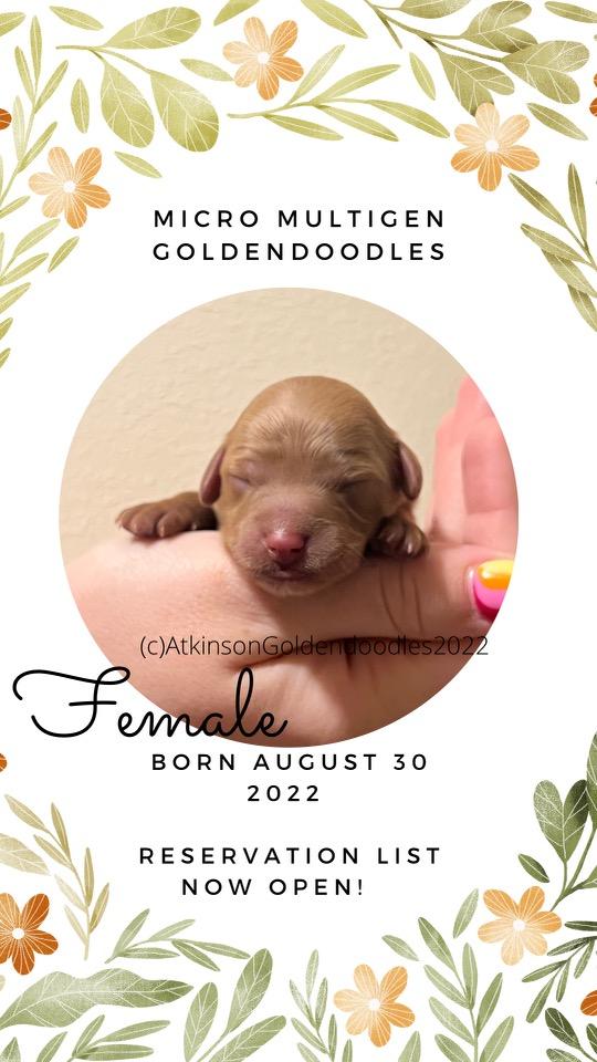 I'm Tiffany A., the breeder behind Atkinson Goldendoodles located in Hyde Park, UT. We offer top-quality puppies from carefully planned litters. We focus on temperament, soundness, and beauty. We love our dogs and our puppies more than anything! We are passionate about Goldendoodles and look forward to sharing the breed with others who love them just as much as we do!