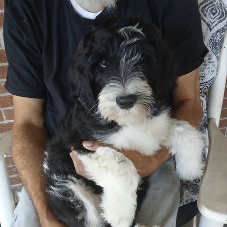 Atlas, my first Sheepadoodle, is the inspiration for breeding. Atlas is calm, loving, smart dog with great emotional intelligence. He easily completed training and became a certified therapy dog on his first birthday. I have 2 dogs, Atlas and Sarabi, who are therapy dogs with the MUSC PAWS Therapy Dog Team, and one, Hamilton, who is in training. Our breeding program is focused on the temperament of our pups, breeding for traits that would be prominent in a therapy or service dog.