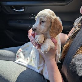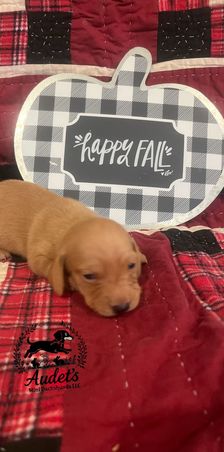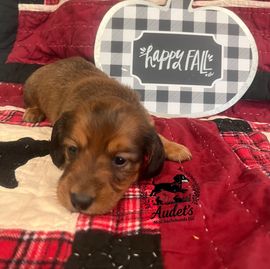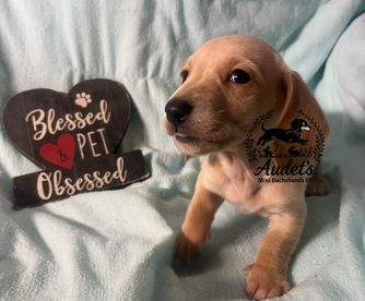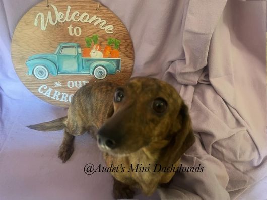 Meaghan was excellent to work with! She was very responsive and flexible with puppy pick up. She provided instructions, some food, and a toy that smelt like our puppies liter which was all very helpful and helped us get started. I also love that there is a Facebook group for Audet dachshund owners to share photos and updates on!