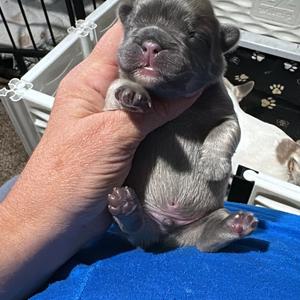 I'm Michelle M., the breeder behind Aura Frenchies ND located in Grenora, ND. We socialize them with in public and try to educate people on the breed when we are out. All of our parents have been DNA tested, AKC HEALTH CHECKS, and fully registered. We provide all current shots and dewormed before going to their new homes.