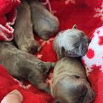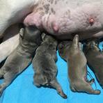 We welcomed Halo and Bruno’s litter August 29th 2025… 1 female and 4 males… they are all a version of the blue fawn coloring, Halo is a longhair carrier, and Bruno of course is a longhair, so we are waiting to see coat length at this time, a few more weeks will establish this.