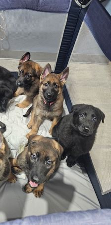 My dogs are from top European working lines. I train my dogs to learn their strengths and weaknesses, then use that information to make the best decisions possible for breeding. I spend a lot of time exposing my puppies to many experiences and evaluating them to prepare them for their future homes.