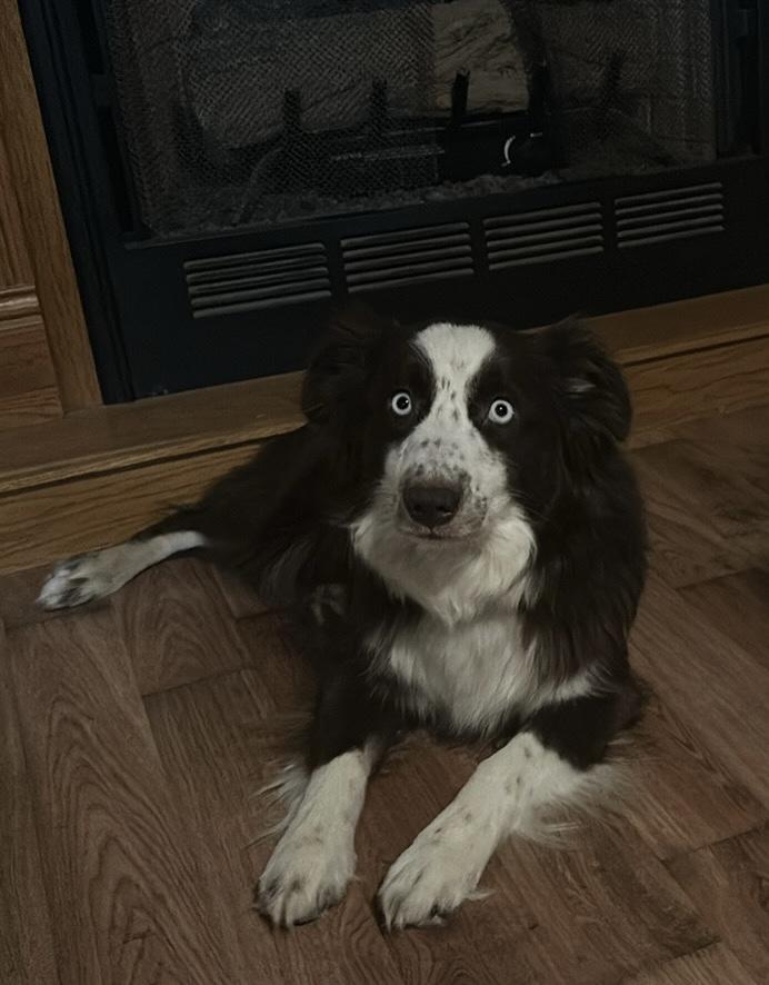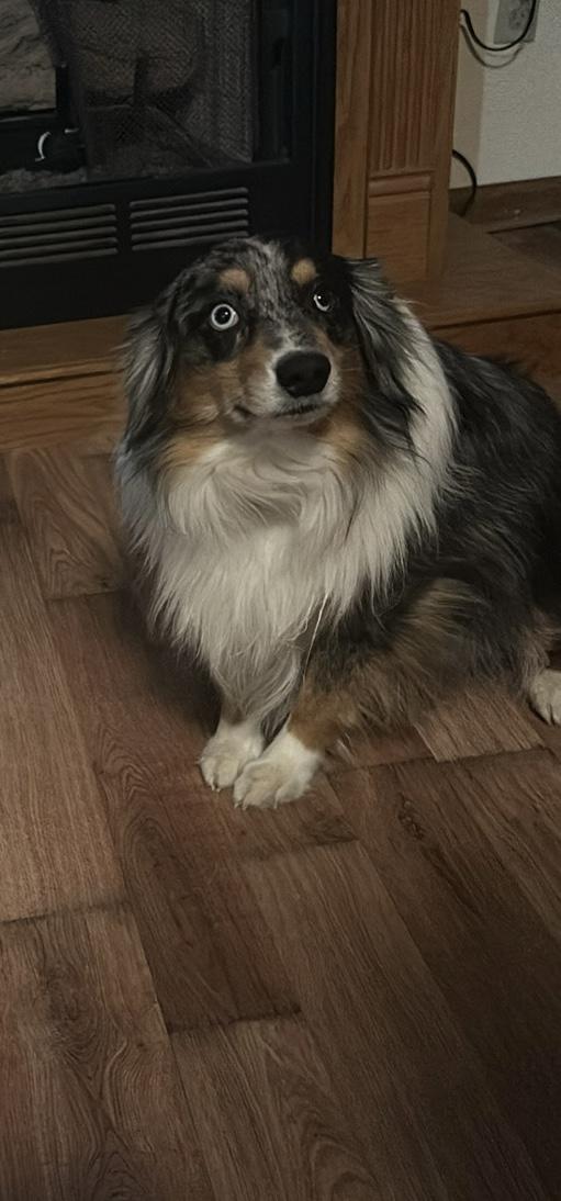 Rip is a miniature Australian Shepherd, who is a blue merle. He has one eye that is crystal blue and the other eye is half blue half brown. Rip is very sweet, cuddly, loves belly rubs, loves baths and the hairdryer. He is very loyal and wants to be wherever we are
