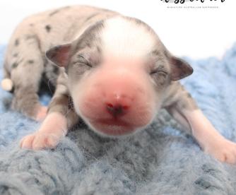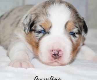 Our puppies include blue merle, black tri, red tri, and red merle. Colors will vary depending on the parent dogs.