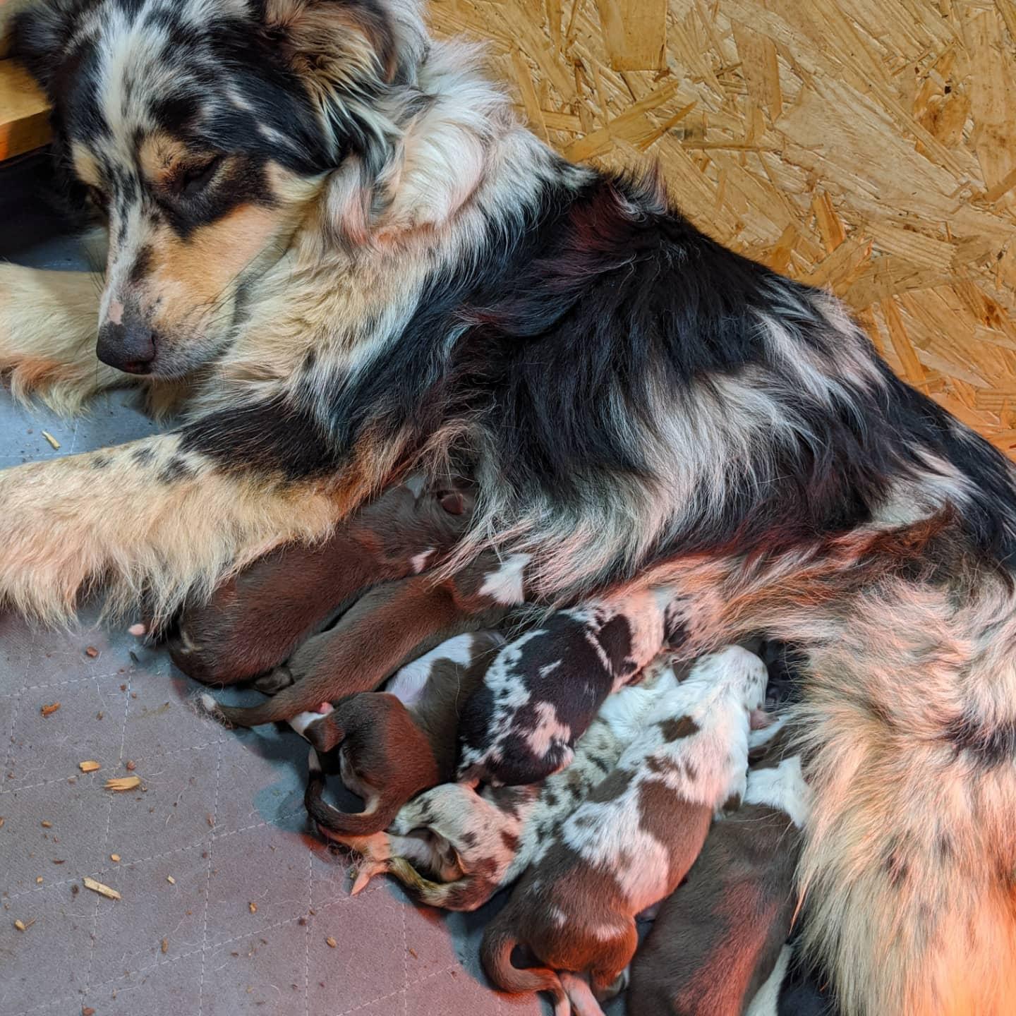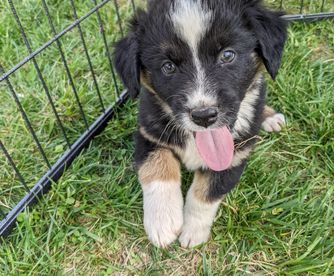 Our puppies include red & white, black & white, black, red merle, blue merle, red, black tri-color, and red tri-color. Colors will vary depending on the parent dogs.