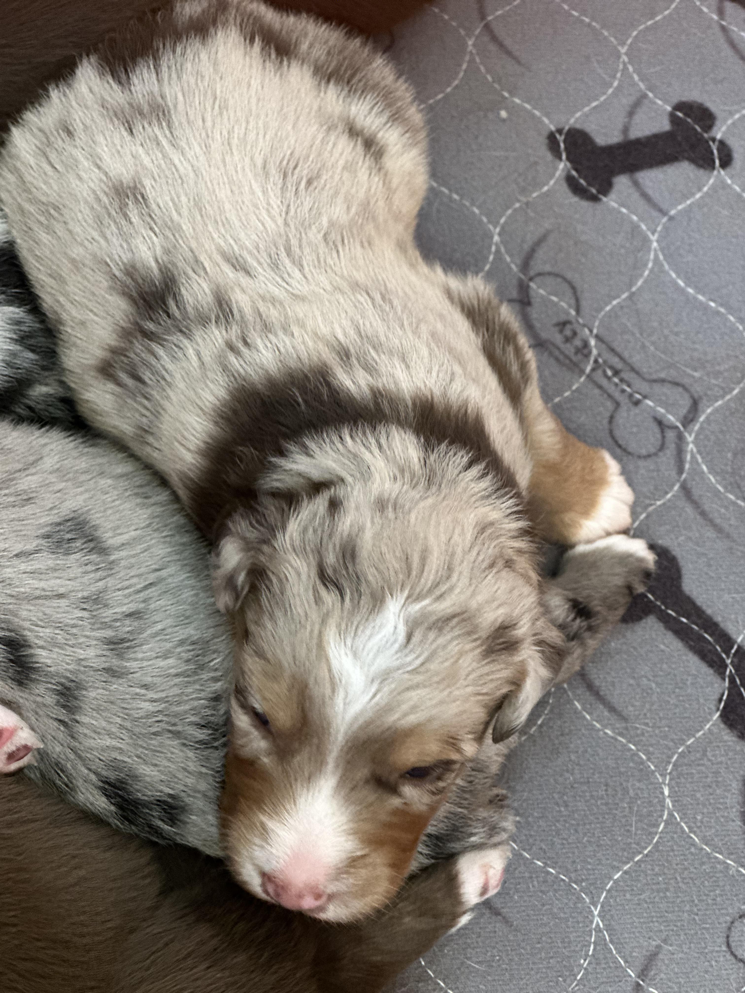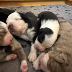 Our puppies include red & white, black & white, red merle, blue merle, black tri-color, and red tri-color. Colors will vary depending on the parent dogs.