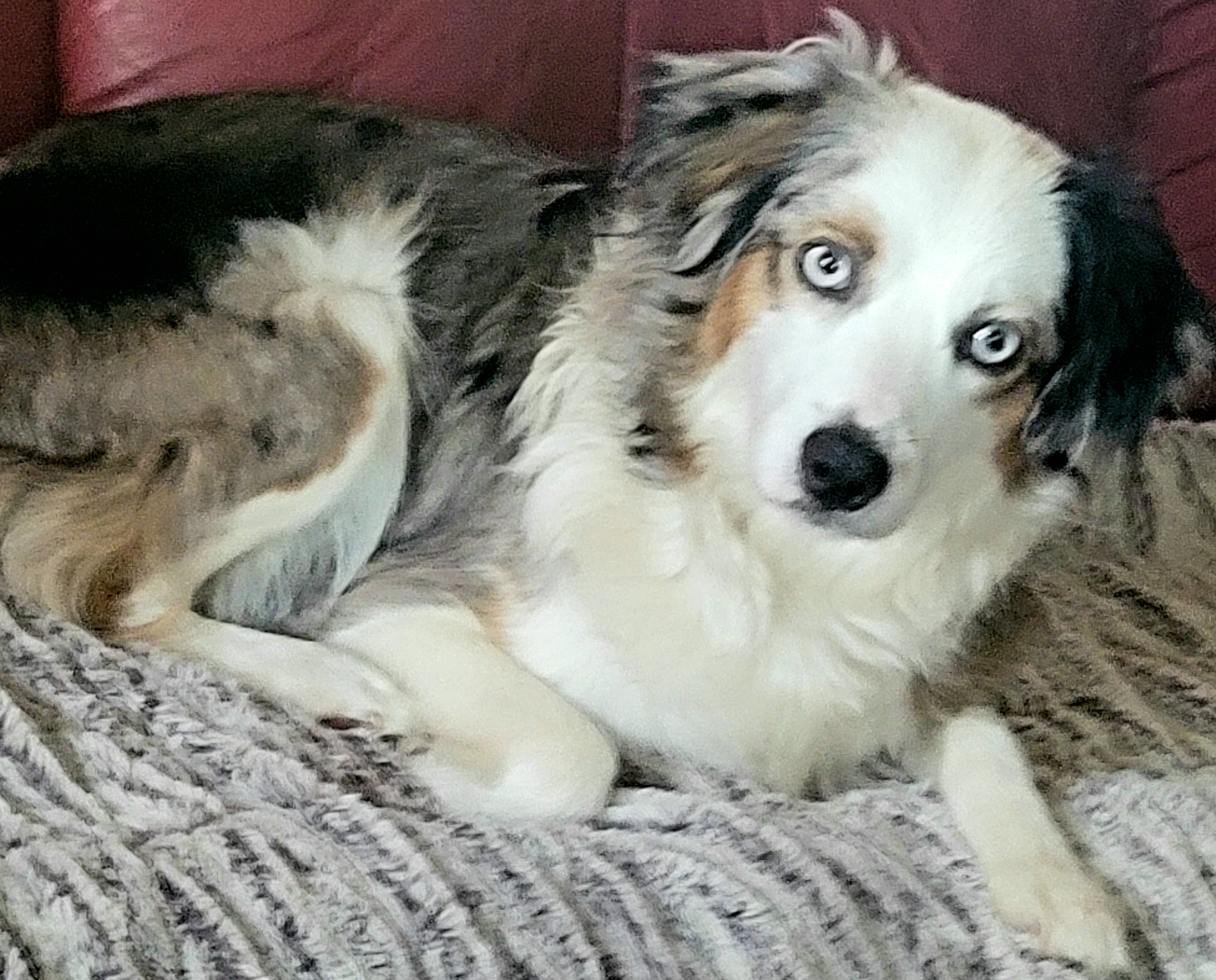 Mini Australian Shepard, Blue Merle, two blue eyes.