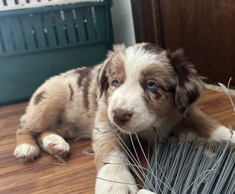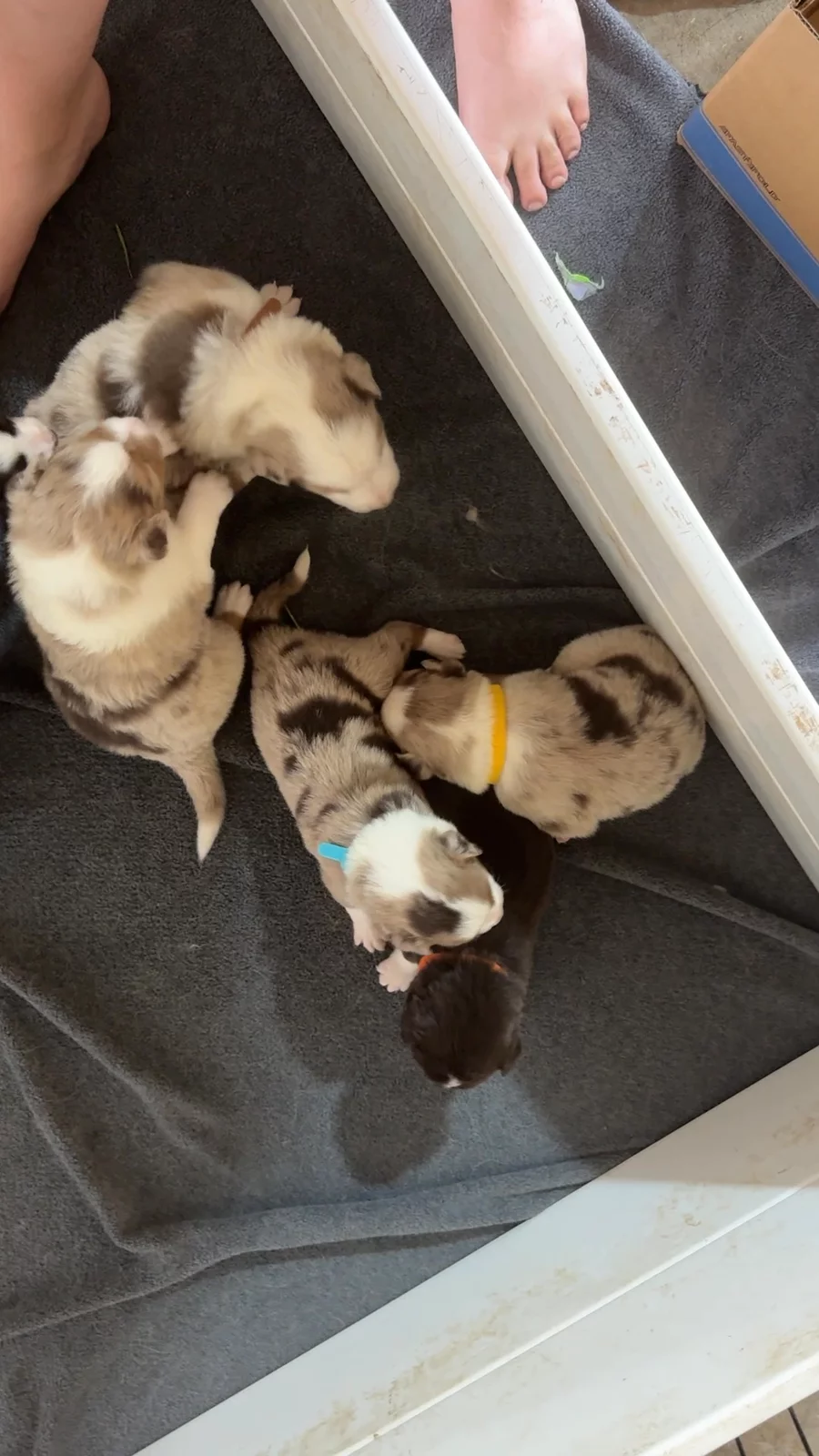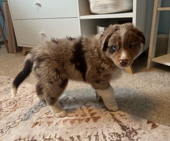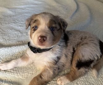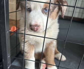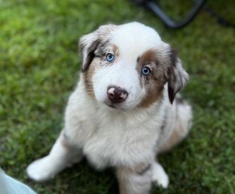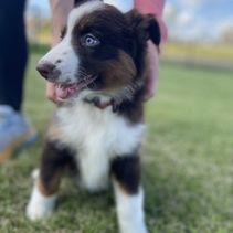 Our puppies include red merle and red tri-color. Colors will vary depending on the parent dogs.