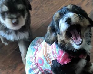 The parents of our puppies are International Designer Canine registered. The puppies are F1 toy Aussiedoodles! Our perfect pups are always up-to-date on shots and come with registration. They are also pee pad trained already. We do not mind traveling to someone for a cost and we also offer shipping. Puppies also come with a one year health guarantee!