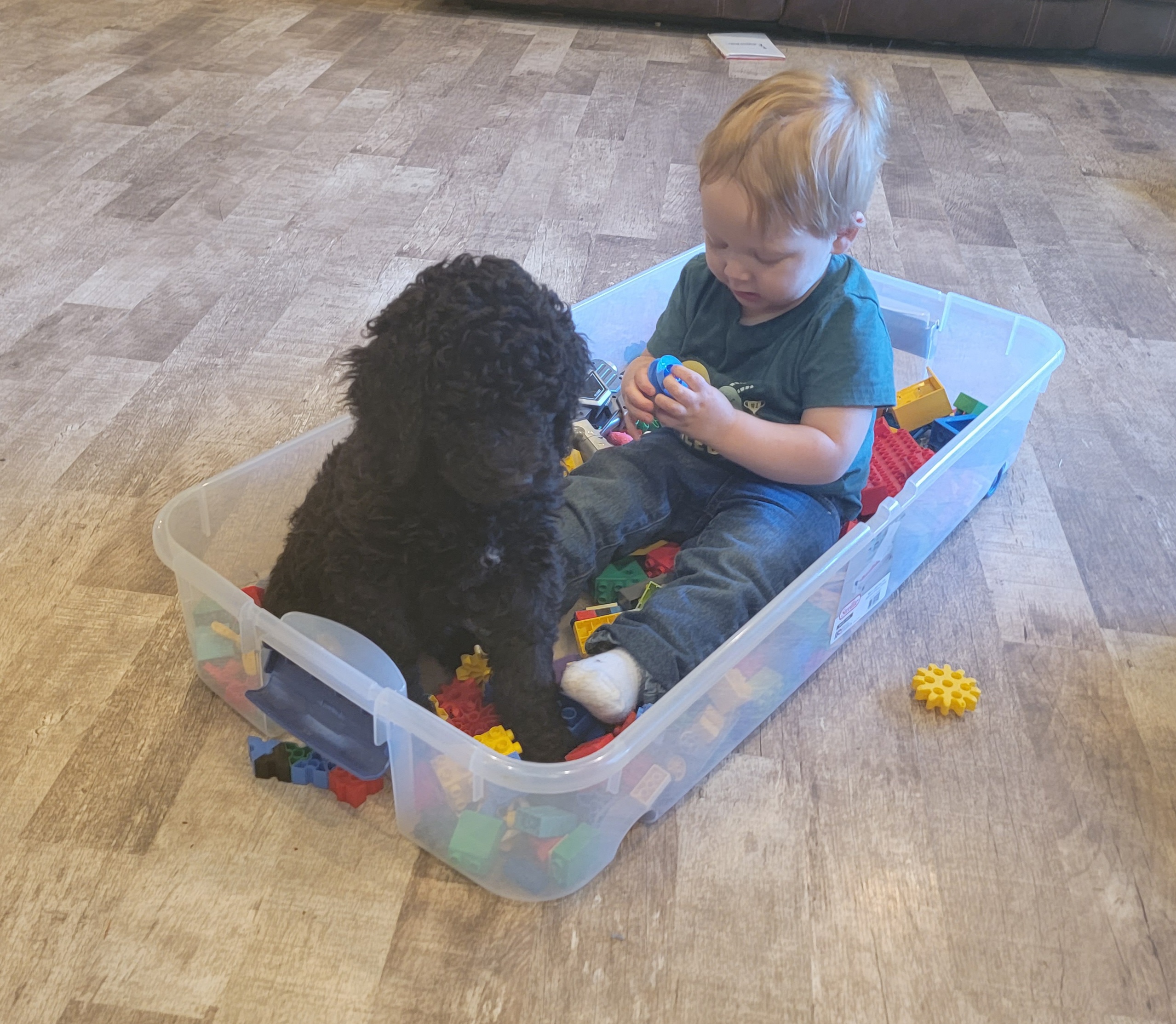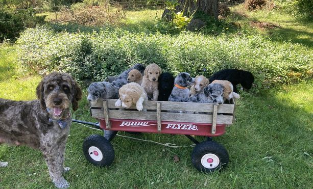 Our dogs are a part of our family. We wanted to be able to share our love for quality companion dogs with others in a responsible way. We love the aussiedoodle as we live in a rural area with cows and chickens. We wanted more of a farm dog with the poodle/doodle coat, and thats how we found our beloved aussiedoodle, Rosie. We also love standard poodles as they have more predictable and reliable traits than doodle puppies do (since they are not a mixed breed) so we also have standard poodle puppies from time to time.