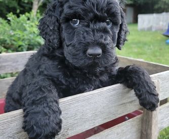 Our Poodle puppies include apricot, black, and cream. Aussiedoodle puppies include blue merle, red merle, black phantom, black and white, black tri-color, and red phantom. Colors will vary depending on the parent dogs.