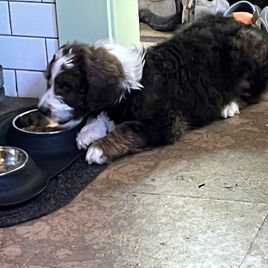 Thanks to Maggie we now have the best dog ever! He was already well socialized and behaved when we picked him up and adopted us immediately. These puppies are obviously well taken care of and even came with a personality test so there would be no surprises! First-rate turnover of the pup and information to make sure we would have no issues. We could not be happier. Plus, every puppy in the litter was a beauty - we would have had any of them!