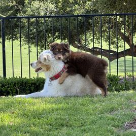 I'm Dolores L., the breeder behind Aussies De Linares located in Stevinson, CA. Our mission is to raise healthy, happy, adorable puppies and connect loving families with their new best friend! Raising puppies has been so much fun, although we take our role in raising them seriously. Breeding has helped us share the joy of our dogs with other families and individuals.