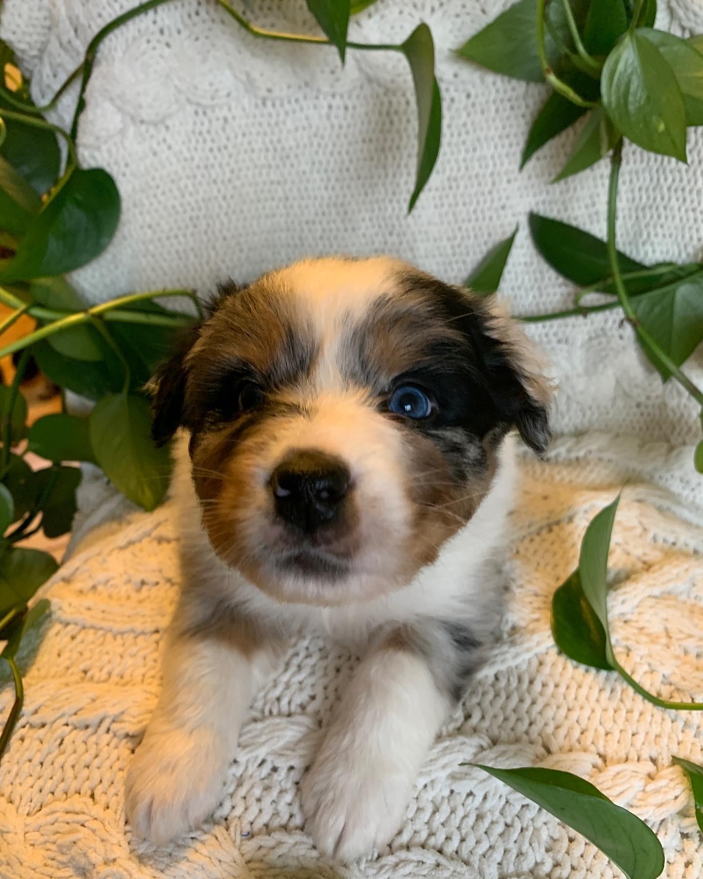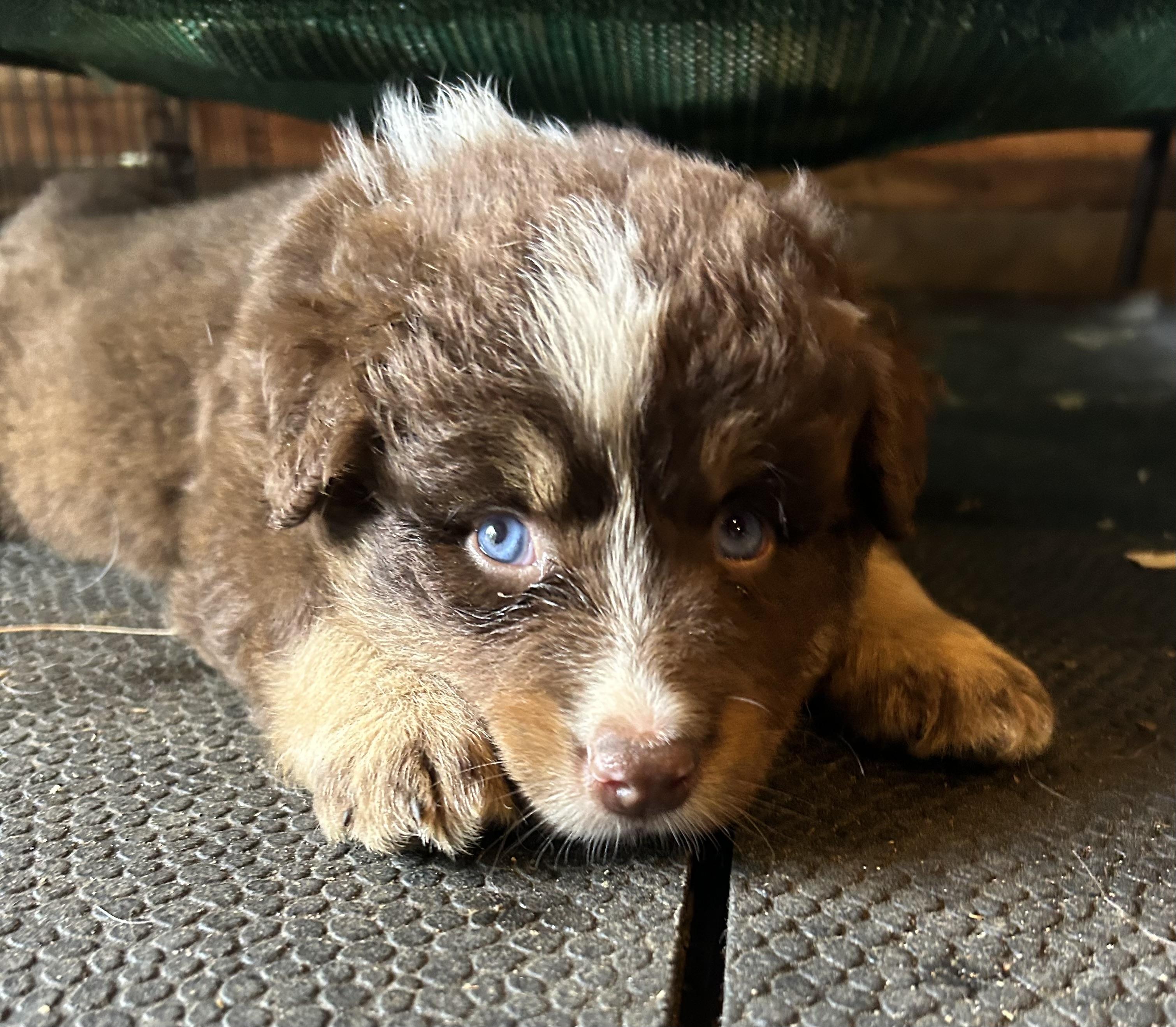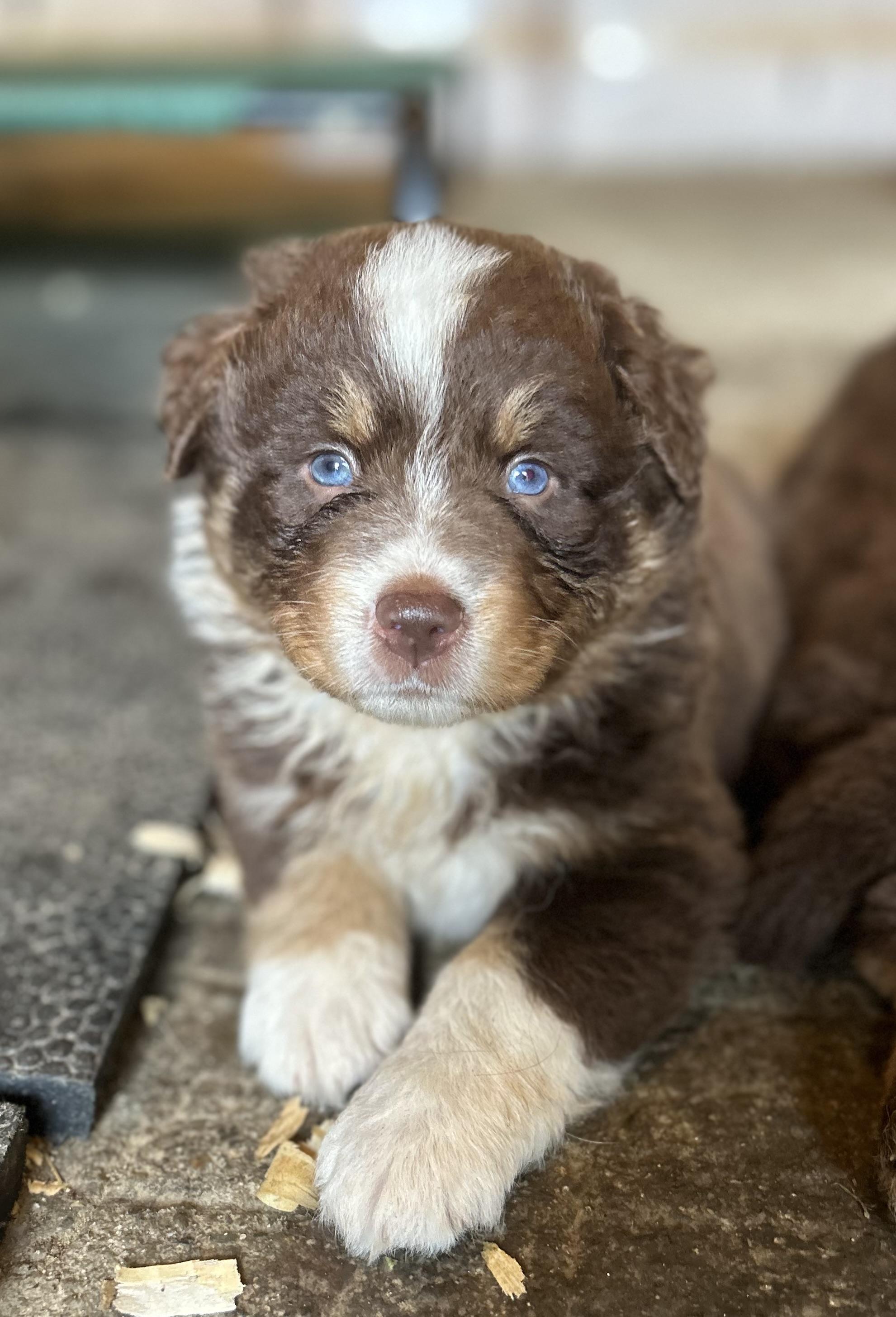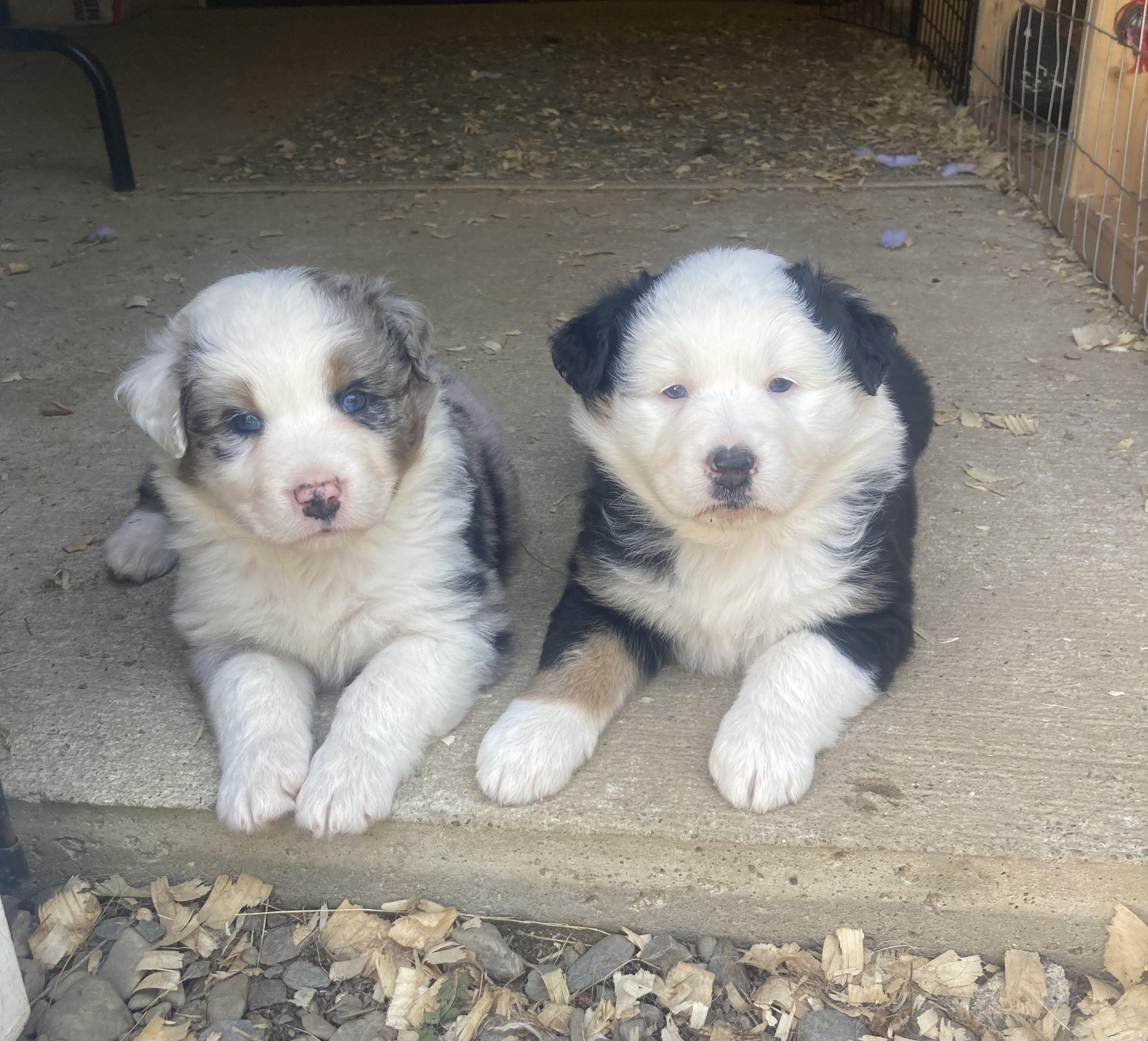 Our puppies include red merle, blue merle, black tri-color, and red tri-color. Colors will vary depending on the parent dogs.