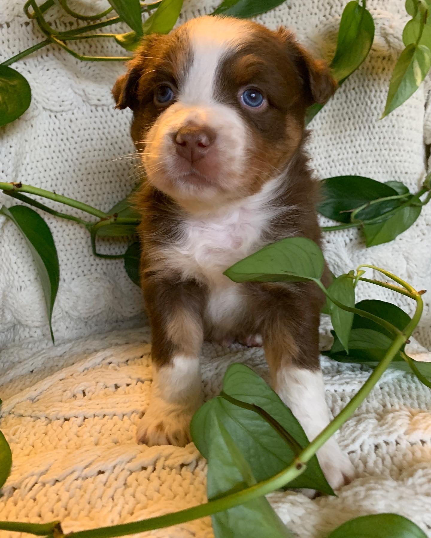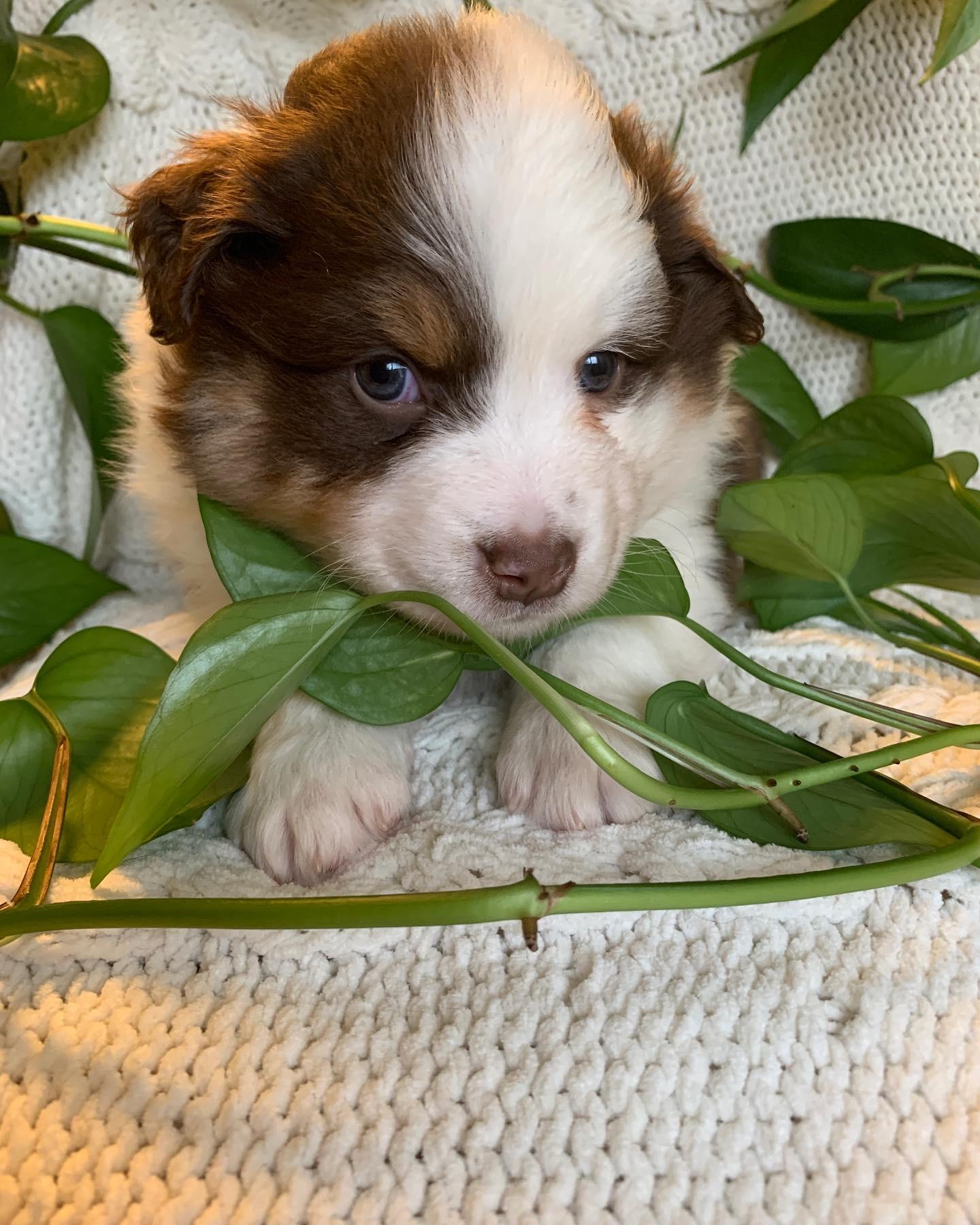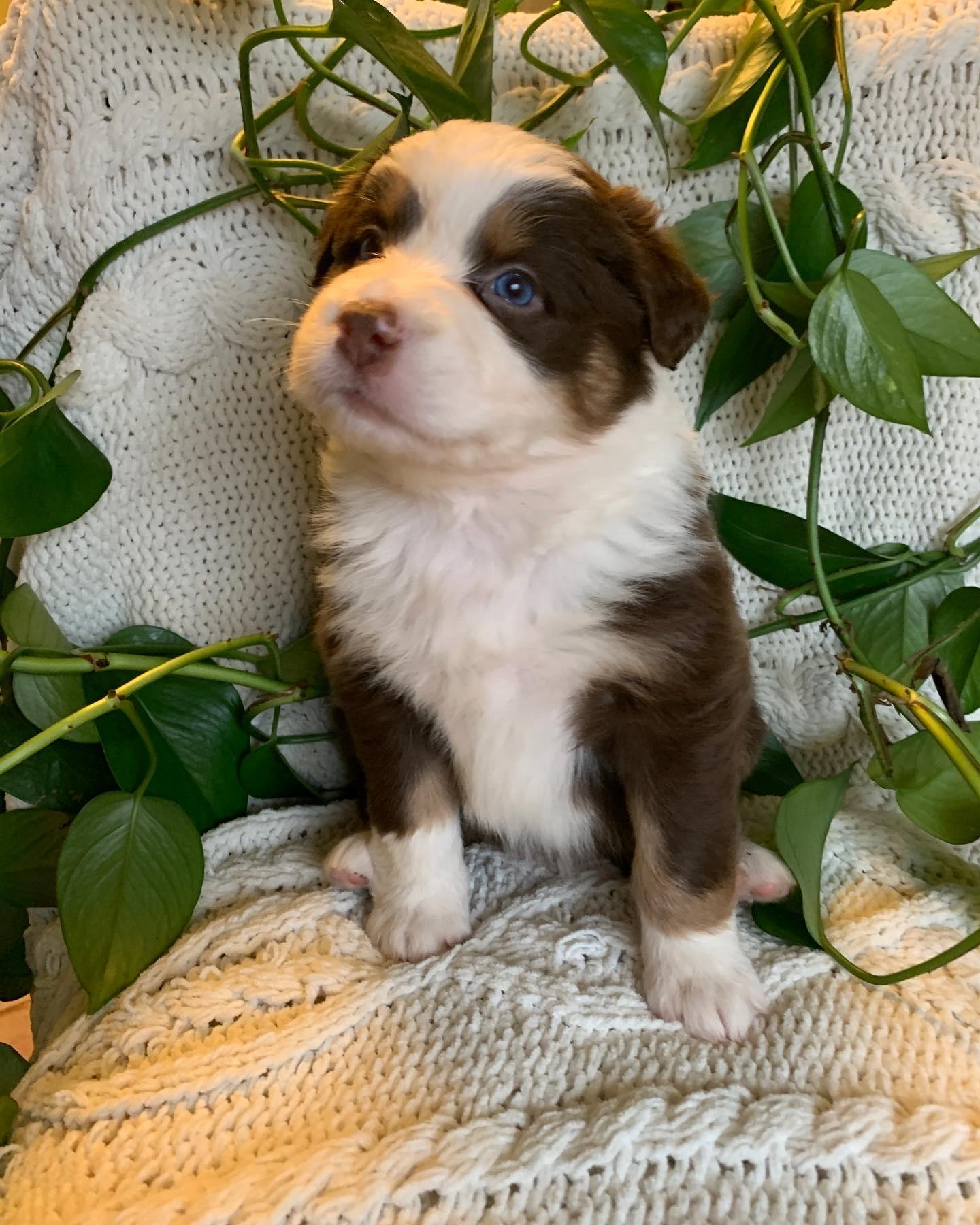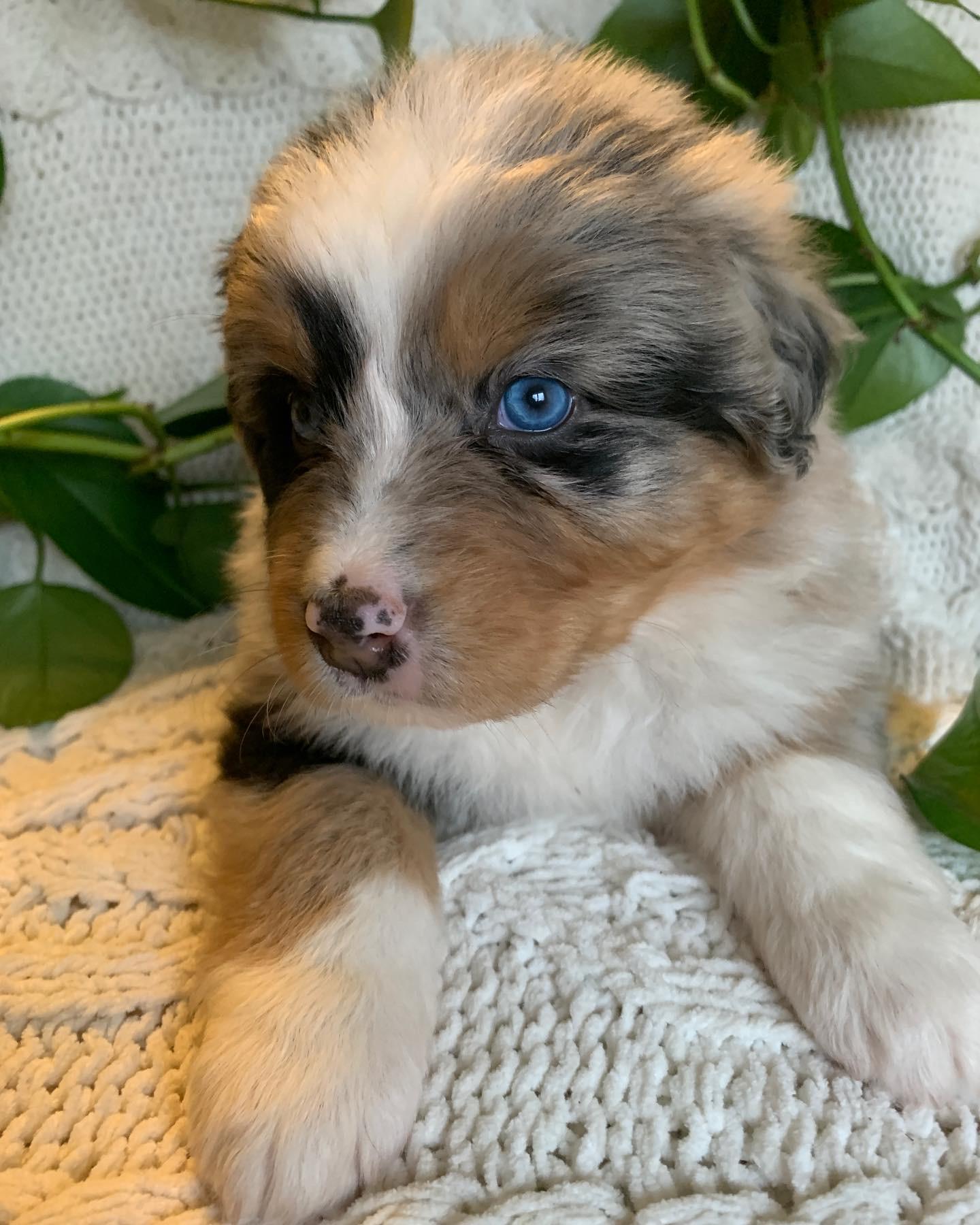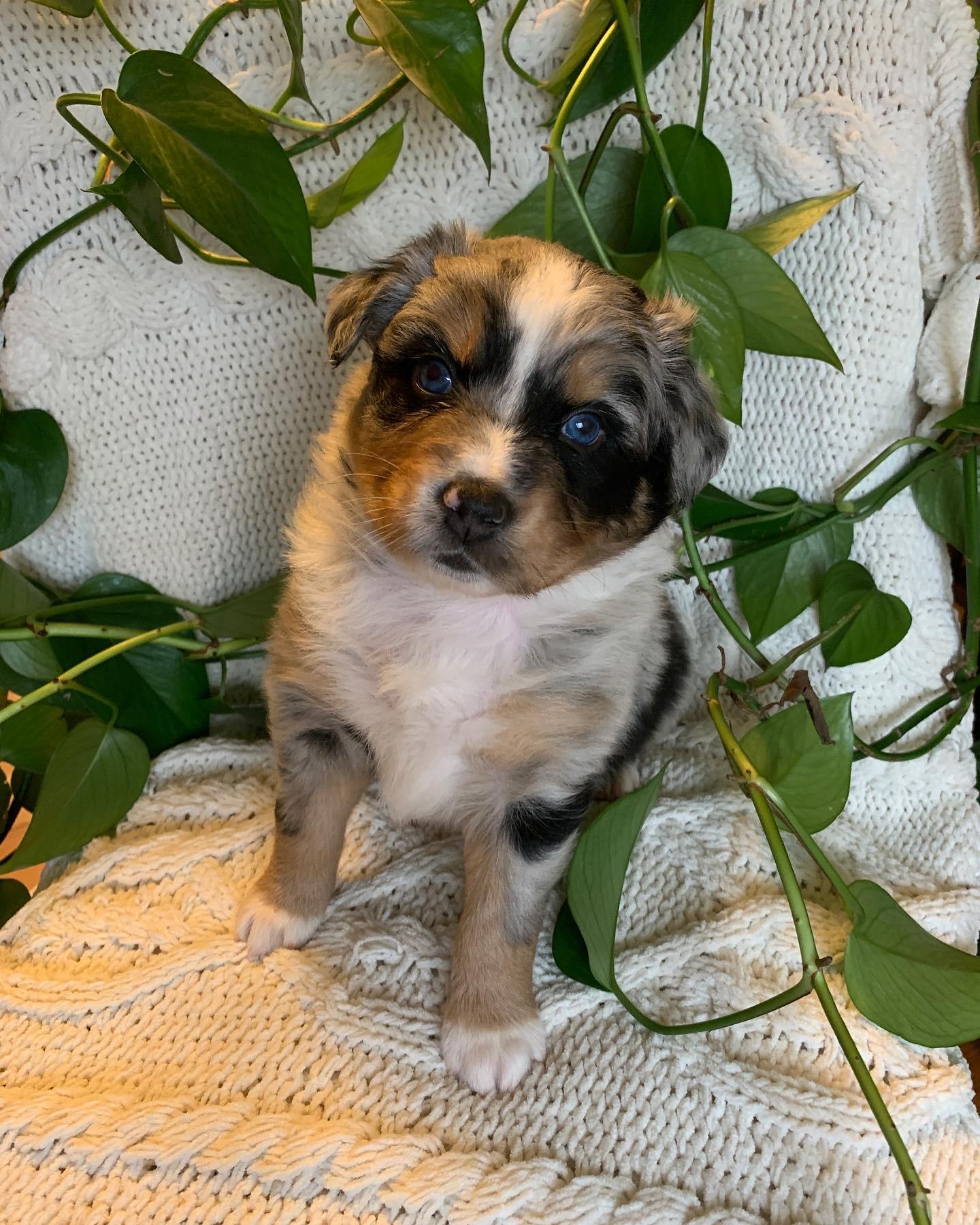 Our puppies include red merle, blue merle, black tri-color, and red tri-color. Colors will vary depending on the parent dogs.
